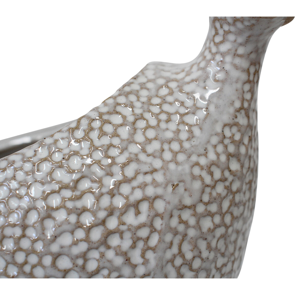We have this Planter Guinea Fowl, and honestly, it’s unlike anything we’ve stocked before. We noticed straight away that it’s hand-crafted from ceramic stoneware, and we know handmade items like this tend to fly off the shelves for those customers who are looking for a one-of-a-kind touch. It’s finished in this neutral, crackled pattern, so it’ll sit well in all kinds of homes – contemporary, country, classic, you name it. And the texture makes it just that bit more interesting than your everyday planter.