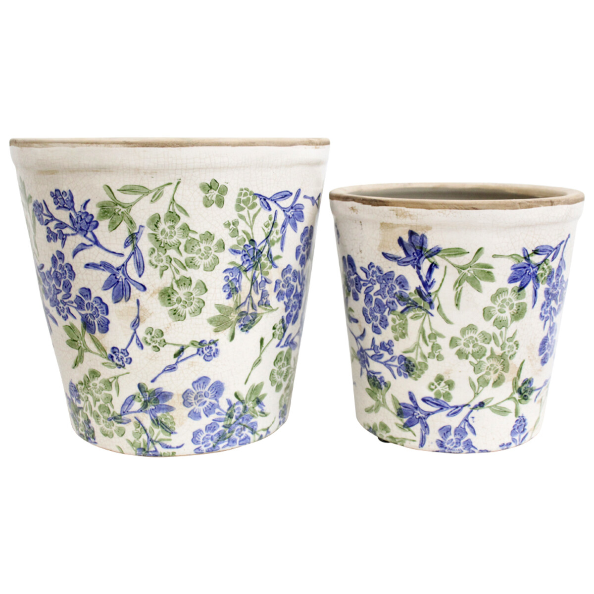We think our Planter S/2 Botanical Blue Lrg makes a pretty lovely addition to any homewares or giftware retailer’s range. They’re sold as a set of two and are crafted from ceramic, which means they have a good weight to them – not flimsy at all. The patterning is the highlight here, with a sweet blue and green botanical print running all the way round. And because these are handcrafted, each one is going to be ever so slightly different. That’s intentional - part of the rustic charm.