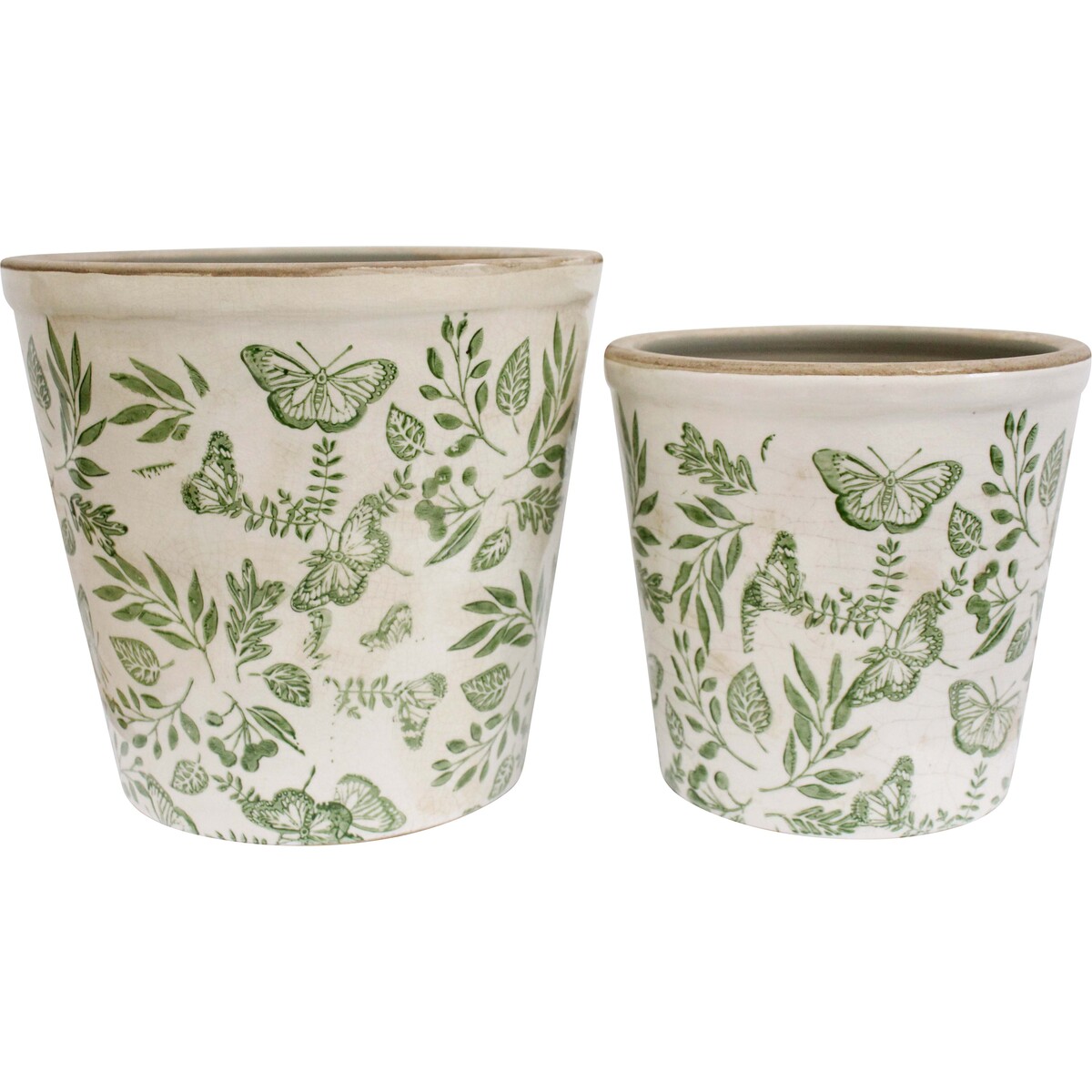 Right, this set of two ‘Enchanted’ large planters is one of our latest favourites. We know everyone says their new arrivals are a ‘must-have’, but we just love the way these come together. Handcrafted from ceramic and finished with a rich, green leafy butterfly motif, each set carries a bit of that garden-after-the-rain kind of charm. The larger planter measures 22 by 22 by 20.5 centimetres, and the smaller is a lovely 17 by 17 by 16.5 cm - both with handy drainage holes (plus a plastic plug). They’re sealed inside for longevity, which is a relief because these are too lovely to risk damage.
