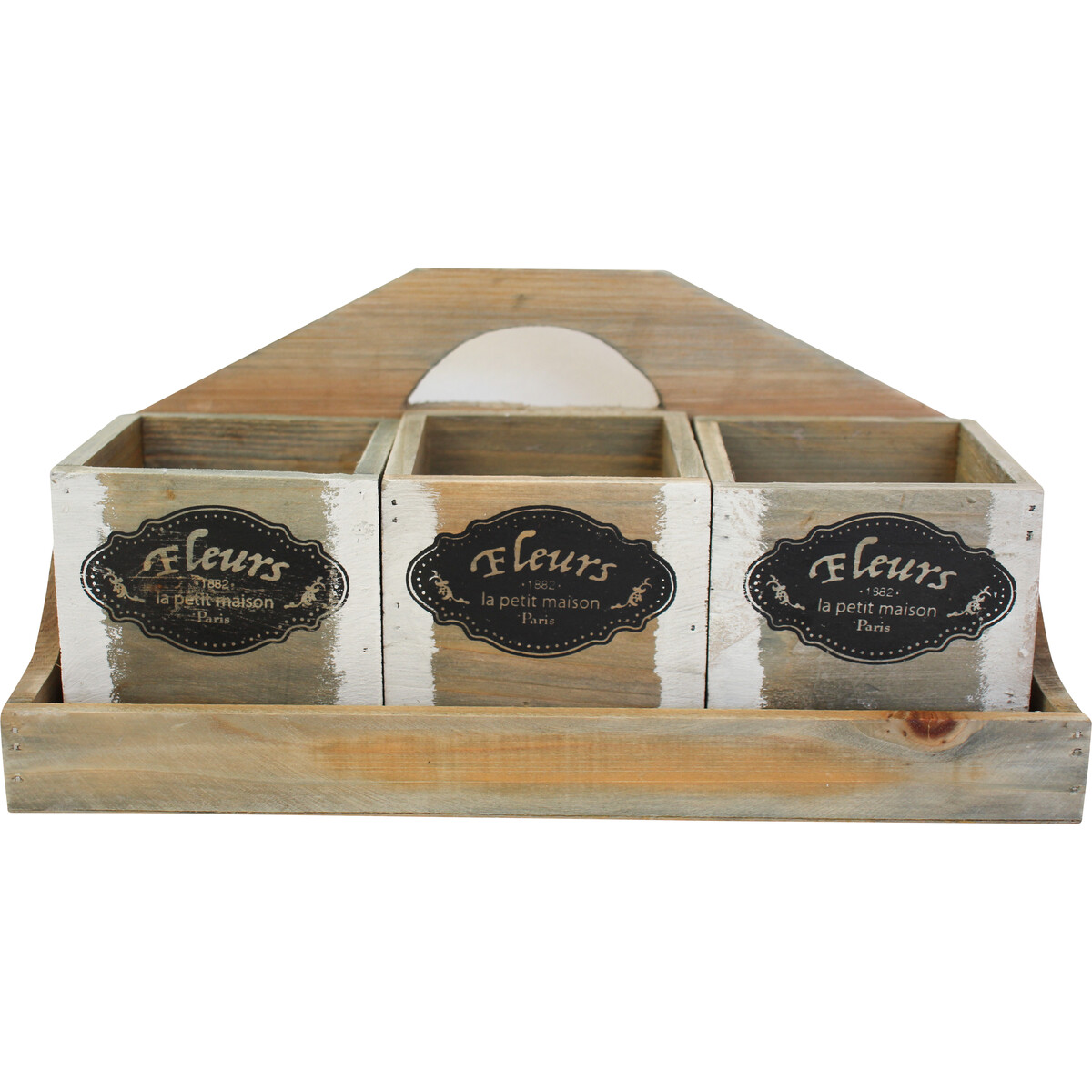 We’ve found that displays are sometimes all about finding a standout centrepiece - and our Planters with Tray Fleur could be just the thing that brings it all together. The weathered, whitewashed finishes and classic motif on each box reads ‘Fleurs 1882 La Petit Maison Paris’, tying them together and adding just a bit of personality. We can’t help but smile at the look - they’re not quite farmhouse and not quite modern, so we find them pretty versatile. The faded patina works in minimalist settings or French-style homewares stores, but they also hold their own alongside rich, romantic decor pieces too. Great for windowsill styling or entry tables. Some pair them with garden-inspired accessories and dried flowers, others seem to like stacking small prints behind it for visual interest. We also think they'd be handy for kitchen utensils, dining room plants, office storage or even spa display. The pieces are all MDF, so you’re getting durability here as well - 33x13x15cm for the tray with three boxes at 9.5x9.5x10cm each.