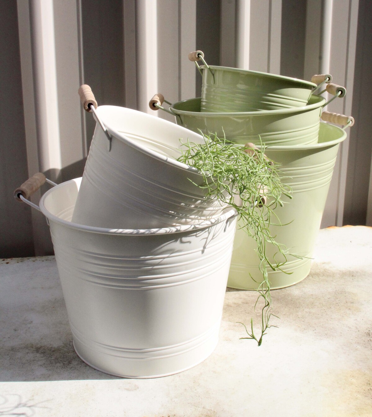We like how this set of three ivory planters feels quietly stylish without being too showy. It’s the just-right balance for homewares shops where customers want to buy something versatile but elegant - maybe that’s just us, but it works. The soft, almost matte metal finish has a refined look to it and the wooden handles add a sense of tradition. We’ve found the sizes (L:30.5x30.5x25.7cm M:26x26x21cm S:21x21x18cm) are spot-on for mixing up plant displays. Or - if your shoppers are searching for more general storage, these sit beautifully on shelves and work in pretty much any room.