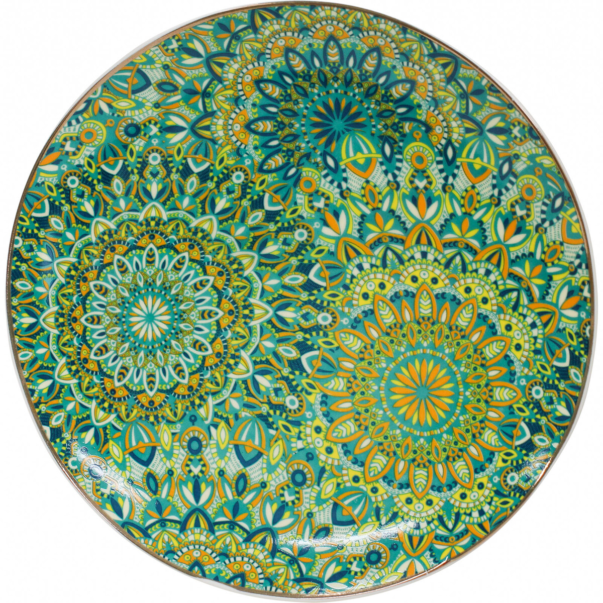 Some of our buyers are absolutely loving this Plate Aquamarine - it’s not often you come across a piece that feels genuinely unique, but this is one of those finds. We think the design is pretty vibrant with all these blues, greens and golds coming together. There’s something hypnotic about the geometric pattern - you can see mandala inspiration in there, which makes it work beautifully across so many interior styles. Mid-century modern? Eclectic beachy? Even in a more contemporary setting as a cheerful accent piece. We’d say it’s mostly about the look, but being made from porcelain also helps keep it sturdy and feeling good in hand - especially since it’s not huge at 20x12x2cm. It works really well for serving snacks or using as a statement table centrepiece. Some people pick these up just to display on a shelf or ledge. And you know how home stylists get excited when pieces like this tie an area together.