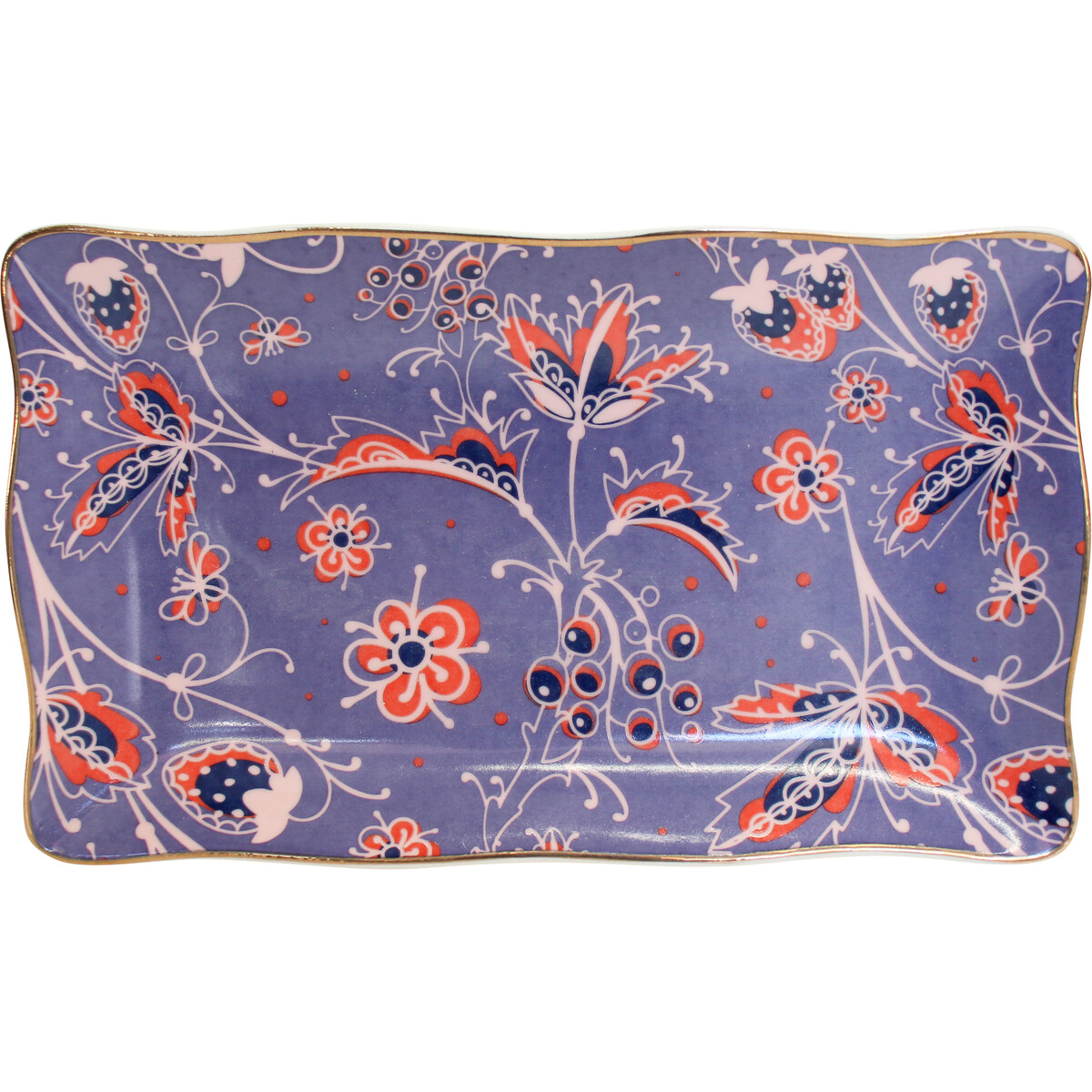 Measuring 20x12x2cm, it’s got a good solid feel without being heavy - proper porcelain does that. The pattern’s different every time because each plate is handcrafted, so you might find the floral decal is off centre now and then, but that’s what makes them each unique. That bold purple pops in all kinds of spaces - kitchens, home offices, living rooms - you know how it goes these days. Want to add something unique to your inventory that isn’t trying too hard to be cool? We’ve probably found it for you with this one.