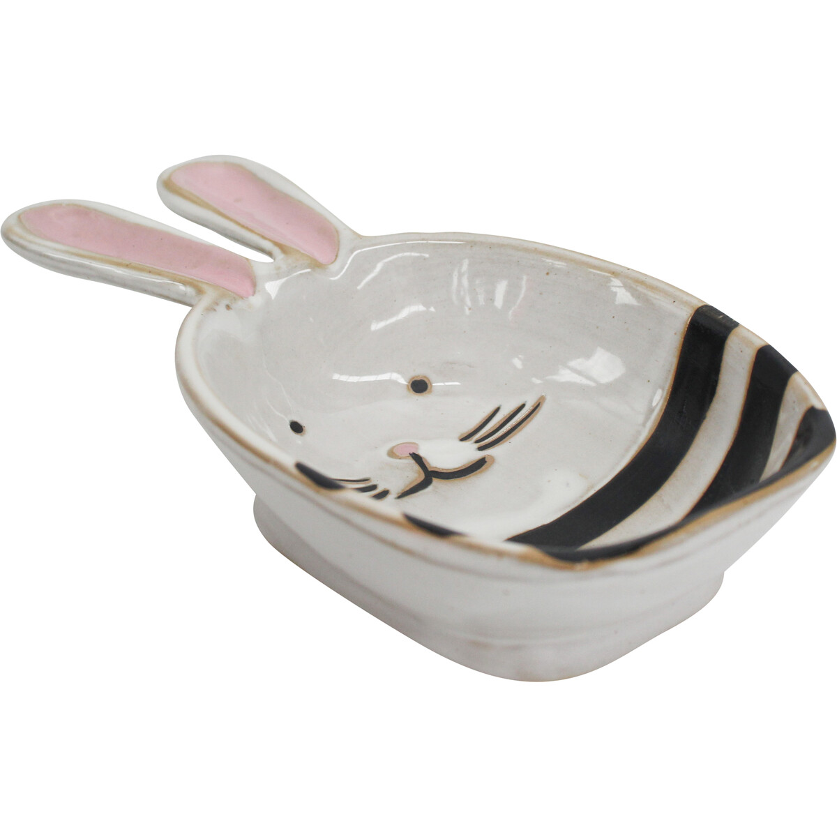 A cheeky and delightful bunny-shaped trinket tray that just puts a smile on your face. Our Plate Bitsy Rabbit is a playful addition to any counter, shelf, or entryway table. With a compact 20x11x4cm size, this piece fits beautifully anywhere - great in flats, bedrooms, offices, and even nurseries. We’re genuinely excited about the whimsical flair it brings to functional decor. The white ceramic design is softened with gentle black details and subtle pops of pink in the ears and nose. Its hand-painted finish gives each tray some slight variations for individuality. You can really feel the quality craftsmanship - it's not just cute, it's solidly made too. It’s so versatile - holds small jewellery in the bathroom, keys near your door, coins in a study, or even wrapped sweets at tea time. Definitely an easy pick for shoppers who love something a little offbeat but charming. This one stands out on the shelf without screaming for attention - well-balanced is what we’d call it!