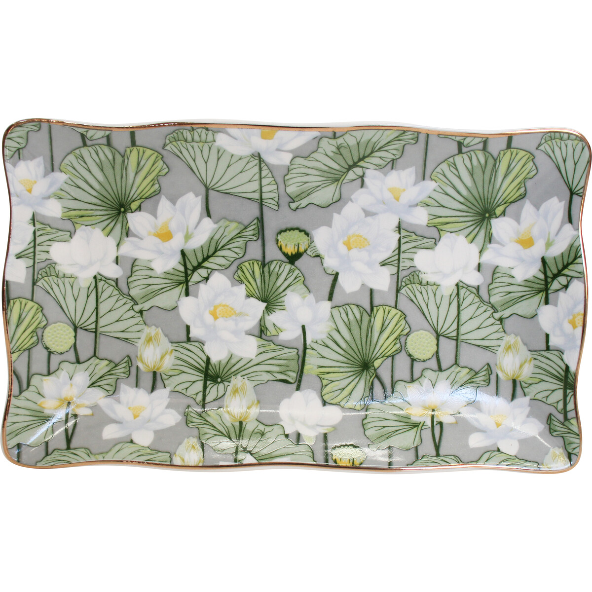 Our Plate Water Lily is one of those pieces that, once you see it up close, tends to find a place in your own office or shop display. Every porcelain plate is individually handcrafted and displays a lush field of white lotus flowers and their rounded green foliage - very botanical, slightly whimsical, just the kind of artful statement that’s easy for customers to gift for home or work. The decal placement does shift around between items - this isn’t actually a defect, but a sign of real-world crafting. It does mean every 20x12x2cm plate is unique and not just stamped from a machine. The colours are fresh and clean with subtle gradients, so it works with both coastal or Scandi-inspired tablescapes as well as alongside bolder florals. It’s the kind of piece that can be used as serveware but also looks lovely on its own. And if we’re being honest, we’ve styled it on coffee tables under candles just for the visual impact. Pair with gold accent napkin holders for an elevated tablescape or sell as a housewarming present for the new homeowner crowd. There’s a lot to like here!