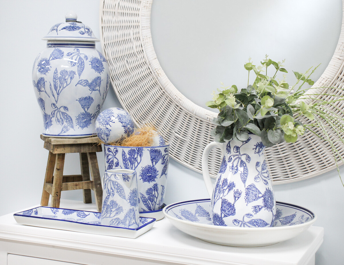 Our Platter Flowering Gum has been popular with all sorts of stockists. People just seem to love the design - it feels a bit classic but at the same time it’s totally modern. We’ve really leaned into the fresh look of botanical illustration and added a rich blue on off-white base to give it an antique edge. The 37x37x8cm size is a bit larger than your standard porcelain platter. This means it works beautifully as a statement piece on a dining or coffee table, displayed on console tables, or for special events when food presentation actually does matter. The imperfections in the finish and glazing are quite pronounced - we don’t think of them as faults at all. Each one is unique because they’re all handpainted and glazed, so there’s this organic beauty and bohemian spirit to every item. They’re an easy way for your customers to brighten up their home and office tables or as platters for entertaining guests at home.