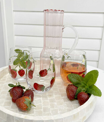 Our Poppy Water Jug is the kind of statement piece that draws attention for all the right reasons - and, if we’re being honest, it’s just a bit fun too. The handle pops out in all its clear-glass glory. The tall column has this soft, gently pink tint. The wavy lip at the top though - that’s where it really becomes unmissable. We’ve got to say, there aren’t many pieces we see that are as visually striking without going over the top.