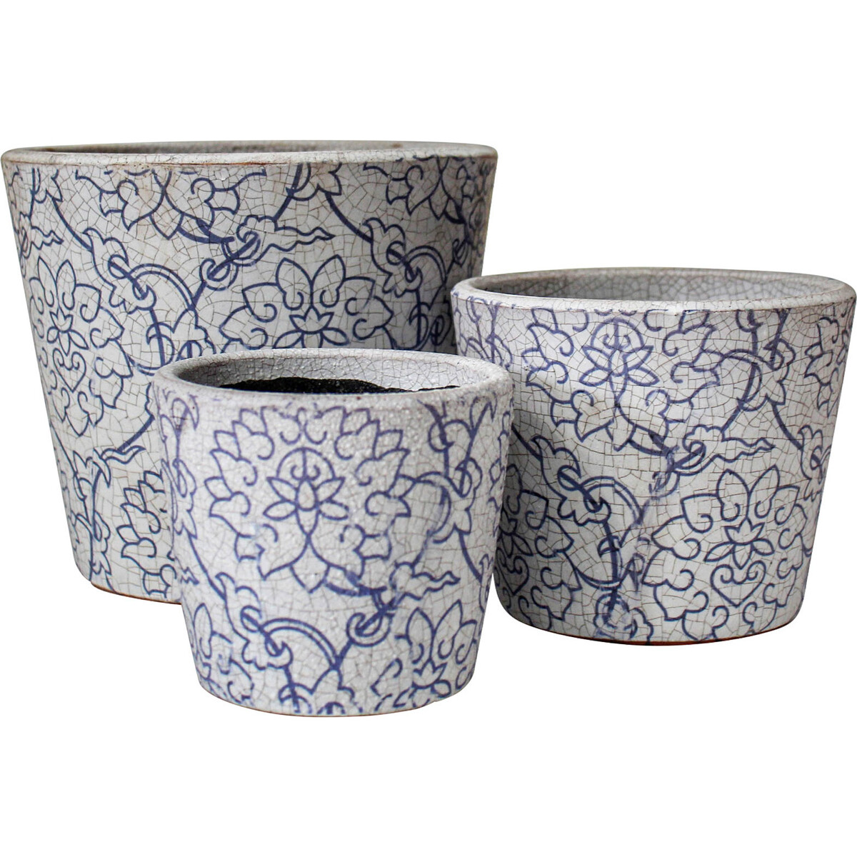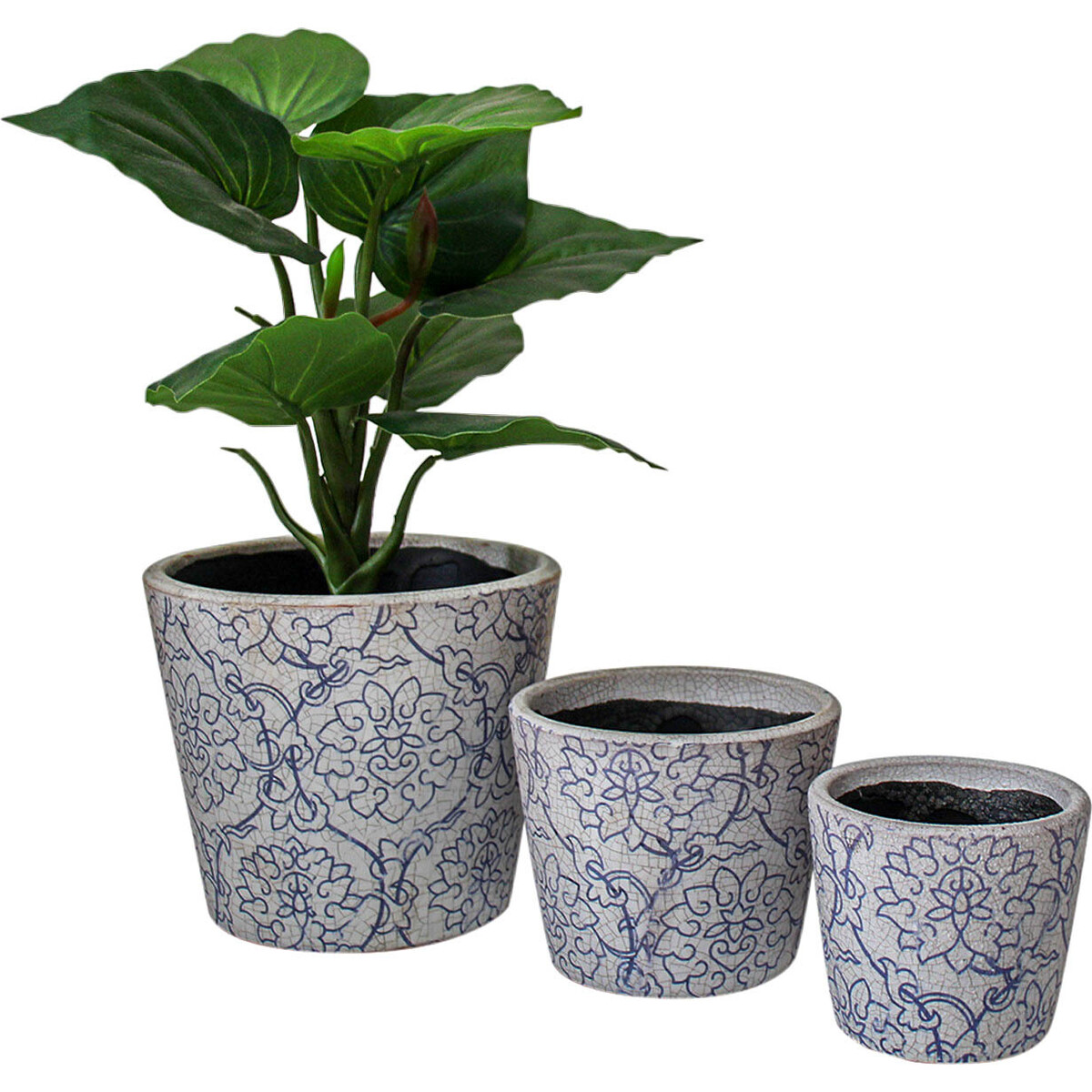 We’re genuinely excited to offer our Pot S/3 Fleur Blue set – it’s something a little different, which tends to get people talking. There are three pots in the set (L:15x15.5x14cm / M:12x12x10cm / S:9x9x8.5cm), all made from terracotta and finished in a distinctive blue and white crackle glaze. This finish is a feature, not a flaw, giving each pot its own unique character that really pops against lush foliage or bright flowers. We’ve noticed they work beautifully for everything from indoor plants in living rooms or studies to sprucing up patios or balcony spaces. That elegant blue pattern with those viney, soft floral lines pairs well with both contemporary minimalist and more classic spaces, maybe even coastal themes. They feel very considered - artful but not fussy. And since they're lightweight enough to move about, they suit offices just as well as homes. Grouped together or dotted around individually, your customers can mix and match with their favourite greenery – a good choice for shops looking for versatility without losing visual impact.