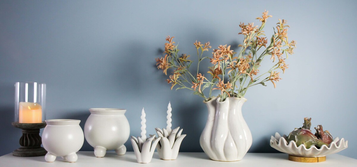 We love this one. The Pot Springtime really stands out to us, and it’s a piece we keep coming back to - there’s something almost... joyous about its shape and that silky soft off-white finish. Its unique silhouette is just so fun - the playful ripples, sculptural curves, and the way it manages to somehow look organic but still super polished all at once. We’ve seen it used as a hero piece on a console with fresh cut flowers for an impressive entryway arrangement - and, well, honestly we think customers looking for something different will instantly be drawn to it. What makes this piece so lovely is the reactive glaze. Each batch turns out slightly different - individual variations in tone or texture that are unique to this process. Those details aren’t faults - they’re what make each piece one-of-a-kind. At 17x17x18cm, this one looks great by itself, but we’ve also seen it styled in a larger cluster for a more curated layered look (those are trending now too). Fits everything from modern spaces to Hamptons-inspired homes because of its classic neutral finish and really versatile lines - not too harsh or edgy but also not traditional.