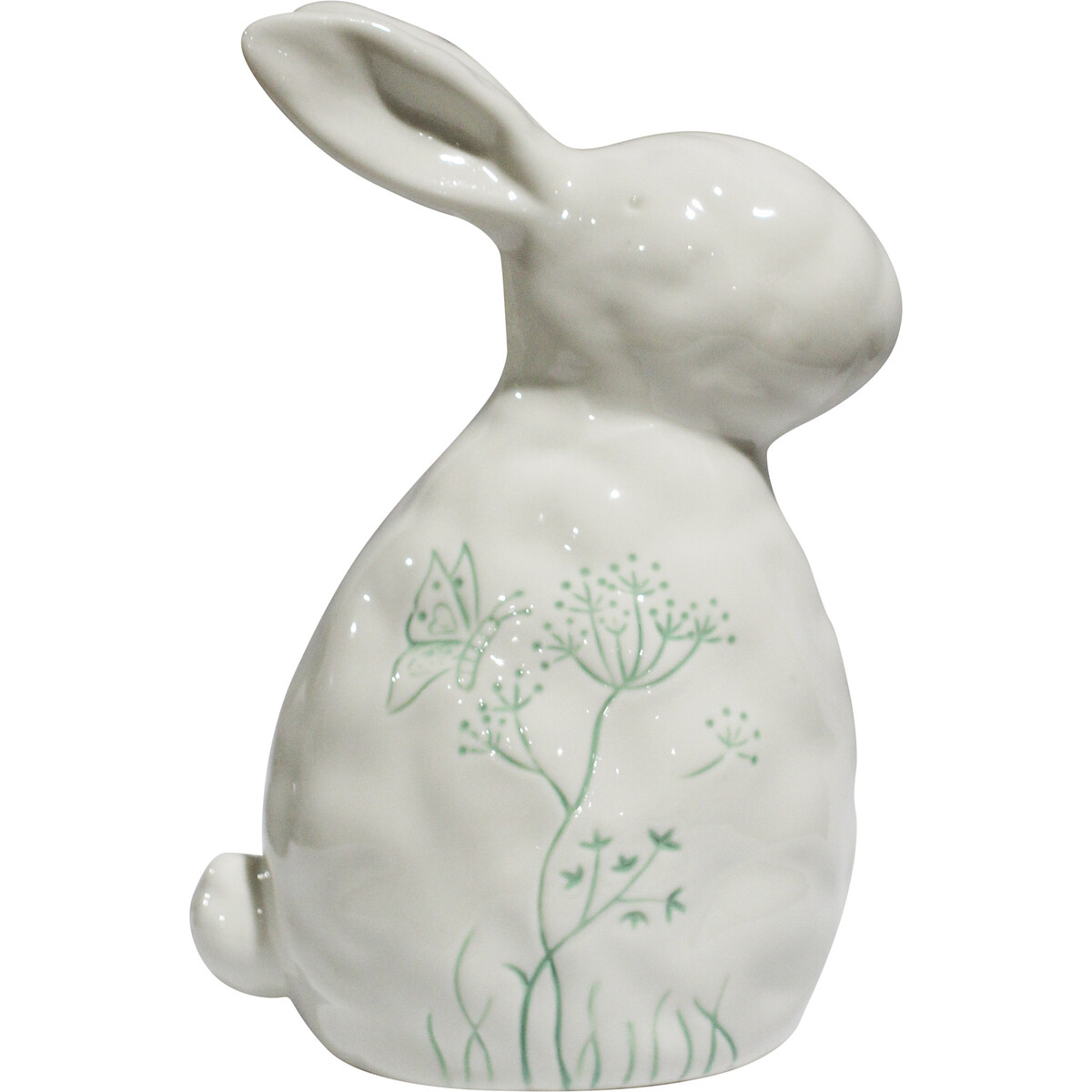 Our porcelain Rabbit Lrg Frenchie Sage adds a beautiful, gentle finish to the table centrepiece - whether for Easter, Christmas, or an everyday special occasion. At 13.5x9.3x20.2cm, it has a lovely presence on its own or as part of a mixed vignette, especially with greenery. The creamy white porcelain picks up the light gently without being glossy or distracting. If you look closely you’ll see this piece has a subtle pale green wildflower motif which really comes out when surrounded by fresh, dried, or faux foliage in complementary colours - and it looks especially great nestled among our matching Frenchie Sage Bird and Jug.
