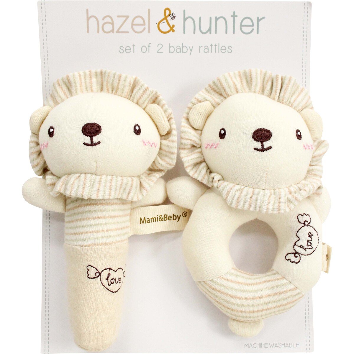 Our Rattles S/2 Lion set is one of those adorable new baby essentials that stands out for sheer cuteness and gentle, baby-safe design. We’ve worked hard to get the look and feel just right on these little lions - plush, soft, and a bit modern in their style. The neutral beige goes with any nursery colour scheme, so they’re a thoughtful pick for gifting families who haven’t revealed the bub’s gender yet or who prefer minimal looks to bright character toys. The pair includes a stick rattle at 16cm length and a circular rattle with 14cm width, both easy for tiny hands to grab and shake. They’re polyester on the outside but with secure plastic rattles inside - and they’re machine washable if spit-up or drool makes an appearance during play. Of course, safety is always our first priority, so these are solidly made and meant to last longer than the early months. Packaging isn’t included as part of the product but let us know if you have any questions about the product itself - we’re always happy to help!