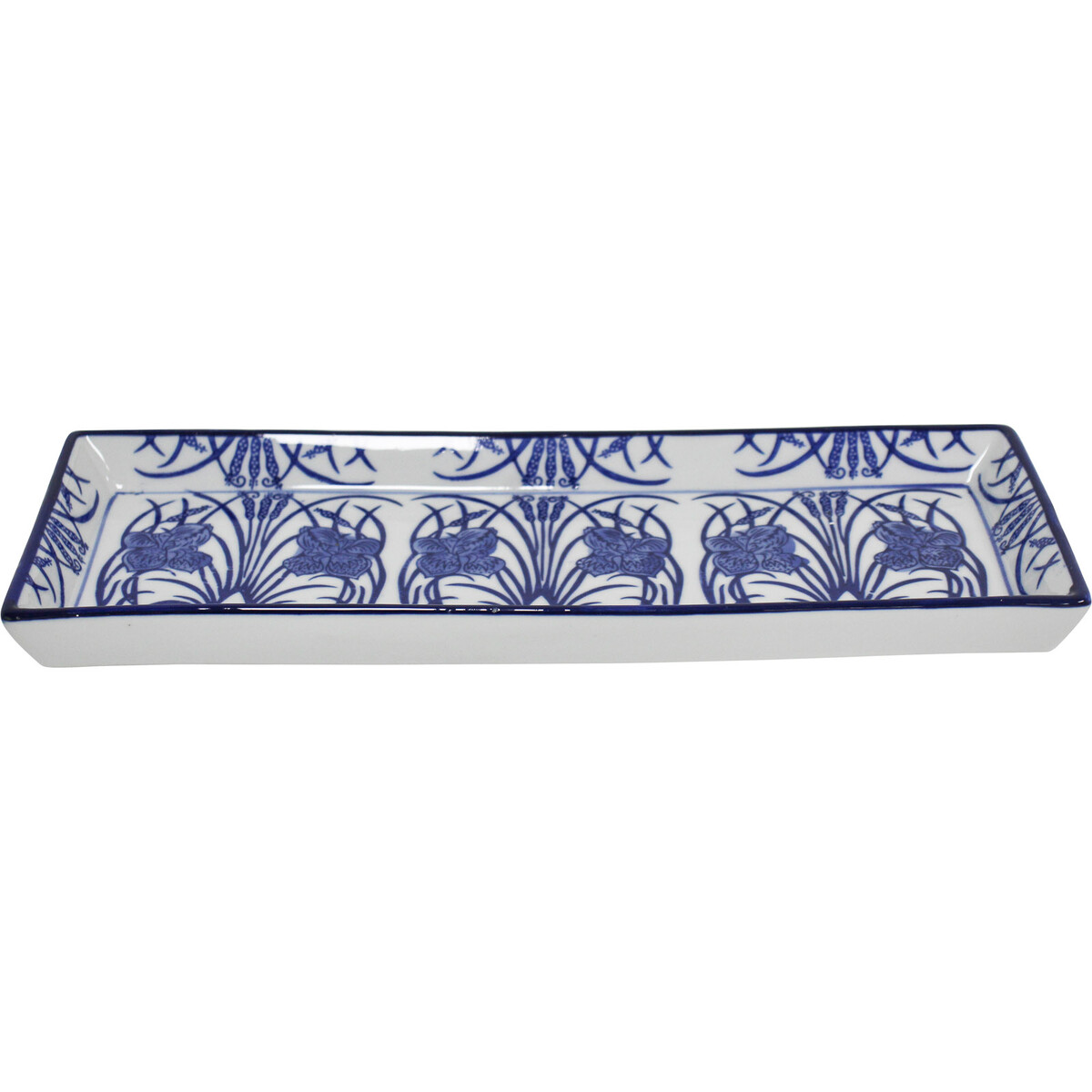 We really think this Rectangle Plate Iris /Rush stands out for a lot of reasons. Handpainted and crafted from porcelain, this plate brings a pretty unique touch to any table or display. It's the kind of piece that, at 35x13x3cm, is just the right size - not too big, not too small - for everything from appetisers to jewellery to hallway keys. And what we think is quite interesting here is how the rich blue pattern brings out those classic botanical vibes. We keep seeing the iris and rush plant motifs go strong in interiors, so it’s right on trend for what people are loving right now. The imperfections in the finish (yep, those tiny quirks) actually add to its charm - that's exactly what shows it’s been painted by hand and not churned out by machine. One thing to keep in mind: each plate will have its own personality because of this process, but honestly that could be a selling point for your customers looking for something more bespoke. Works well displayed as a centrepiece, and there’s no doubt it complements almost any contemporary, coastal or country home style with ease.