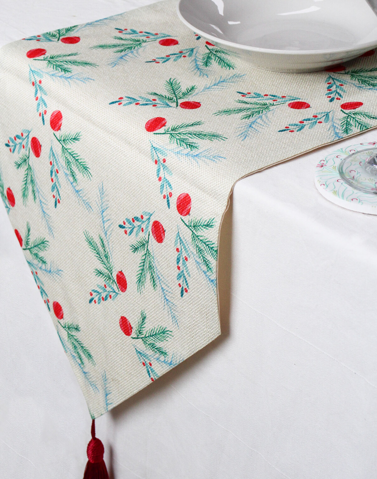 Well, we can’t help but admire the Runner Christmas Leaves. With its playful red baubles and sprigs of watercolour-style foliage, it’ll bring a burst of holiday spirit to both classic dining spaces and even those more contemporary settings. We’ve noticed this look does wonders as a counter centrepiece or over crisp tablecloths - the festive design is subtle enough that it doesn’t overpower, but instantly signals the season.