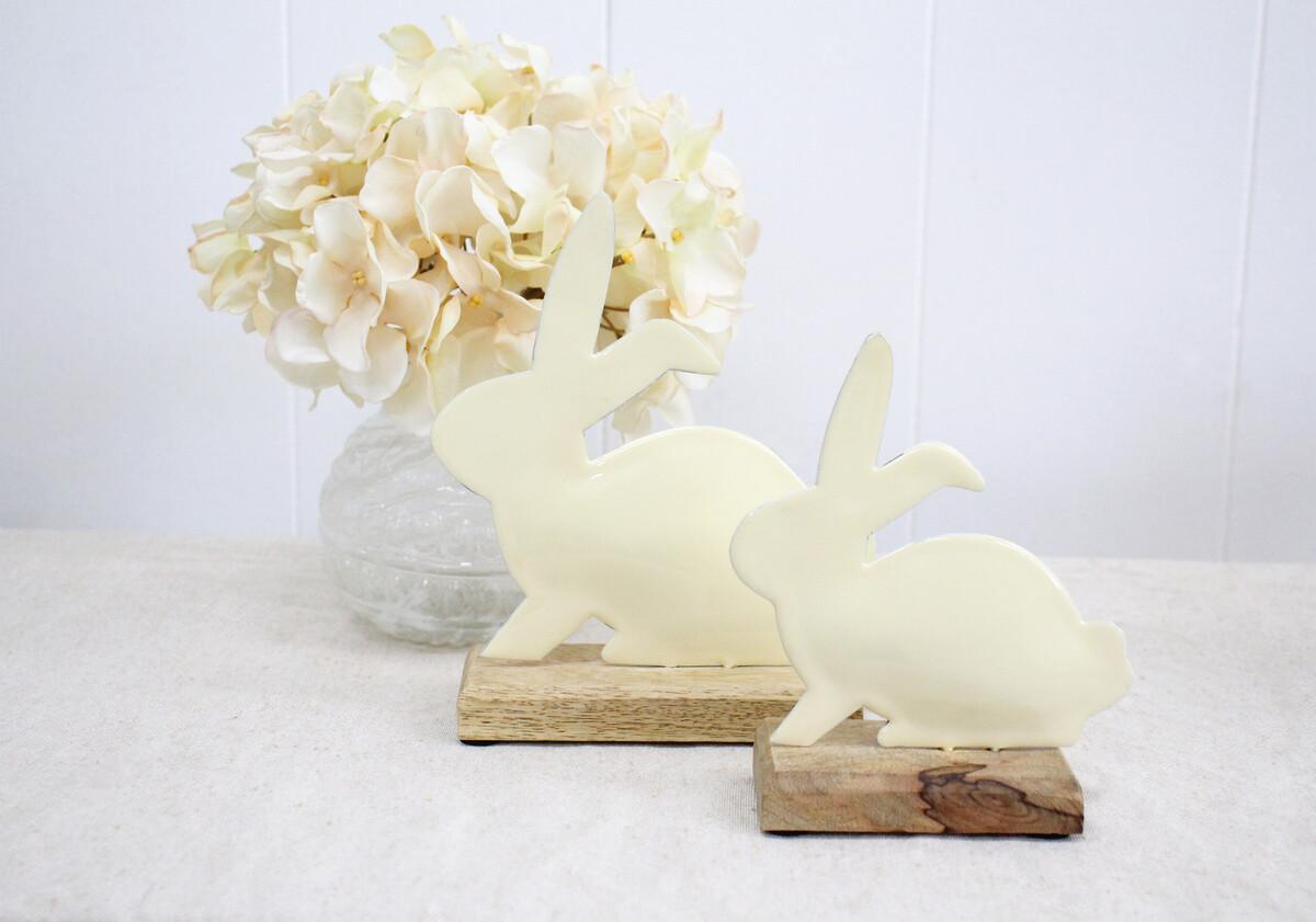 We really like the personality in this S/4 Rabbits set. The quirky silhouettes stand out with their oversized ears and bold shapes - and that slightly glossy iron finish makes each one pop even more. The palette is gentle, too. White and cream tones feel fresh without being cold, and the natural wood base warms it up nicely. They're a fantastic way to add some playfulness to a windowsill, bookcase, or sideboard - we could see these being quite the conversation starter on an entryway table or even on shelves in kids’ spaces. The pairings make them especially versatile: mix the two sizes for an eclectic look, or group them together for a nice visual impact (L: 15x17cm M: 12x14cm). We think homewares and gift retailers will appreciate how flexible these are when it comes to styling - they work just as easily with cottagecore as they do contemporary decor. And they're durable, crafted from iron with a solid wood base, so it's something people can keep for years. Fun year-round, but particularly eye-catching at Easter - we can't wait to see what your customers do with them!