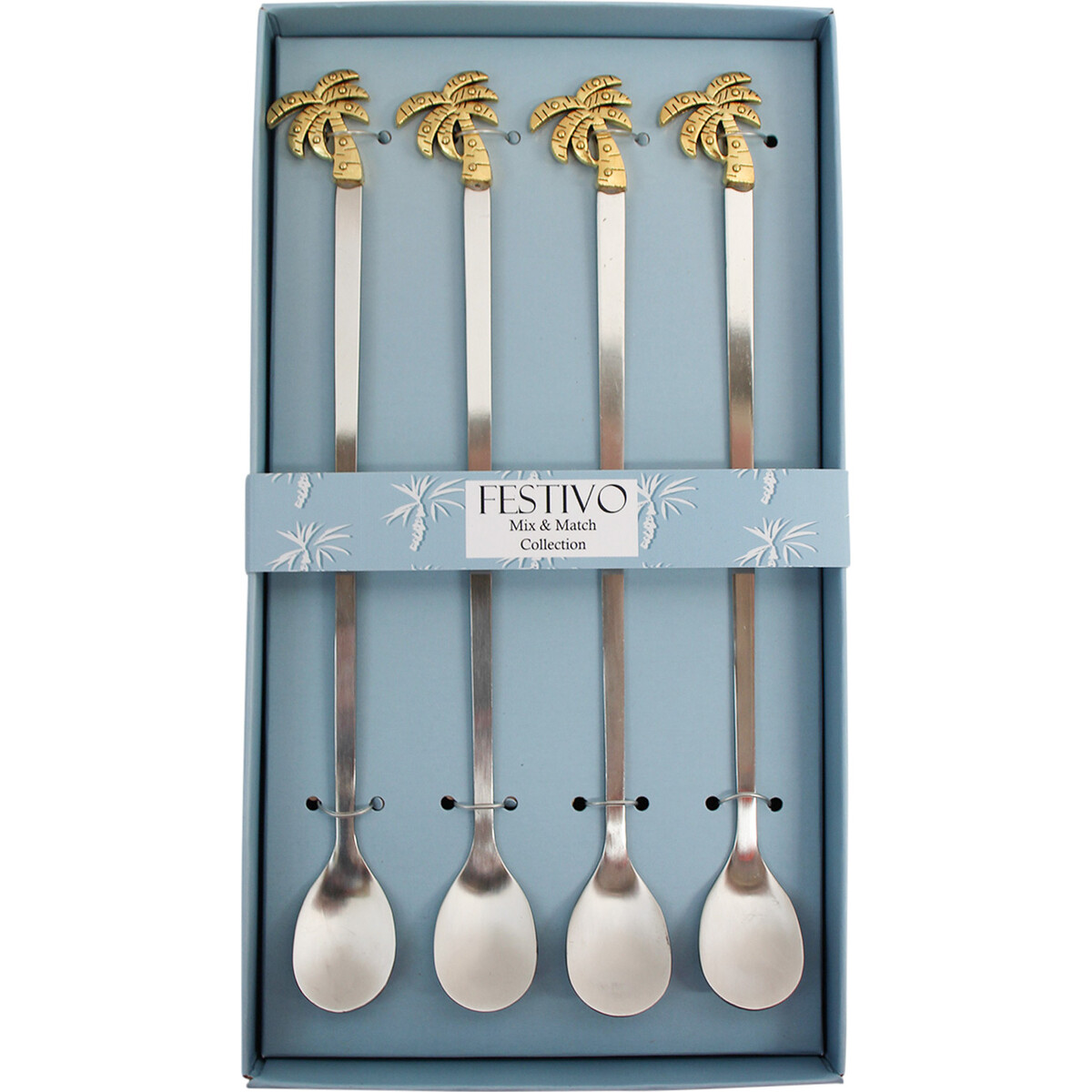 We have to say, these S/4 Long Spoon Palm spoons are honestly a bit of a hit with us. That touch of coastal whimsy in the gold-tone palm detailing sets them apart straight away. And let’s be honest - who doesn’t enjoy something a little different on their afternoon coffee break? We see a lot of retailers lean towards functional giftware, but we keep coming back to decorative pieces that still perform as everyday essentials for all sorts of kitchens. Metal through and through for strength, but not safe for dishwashers. This set is definitely one for the hand-wash only crew, so there’s just something about them feeling like an extra special treat when you pull them out on weekends or special occasions. And they’re tall at 22.5cm, which makes them spot-on for long drinks - iced coffee, tall cocktails, you name it. Let’s face it - palm tree cutlery isn’t the most subtle thing in the world. These go down especially well with homewares shops where customers are chasing those beach house vibes.