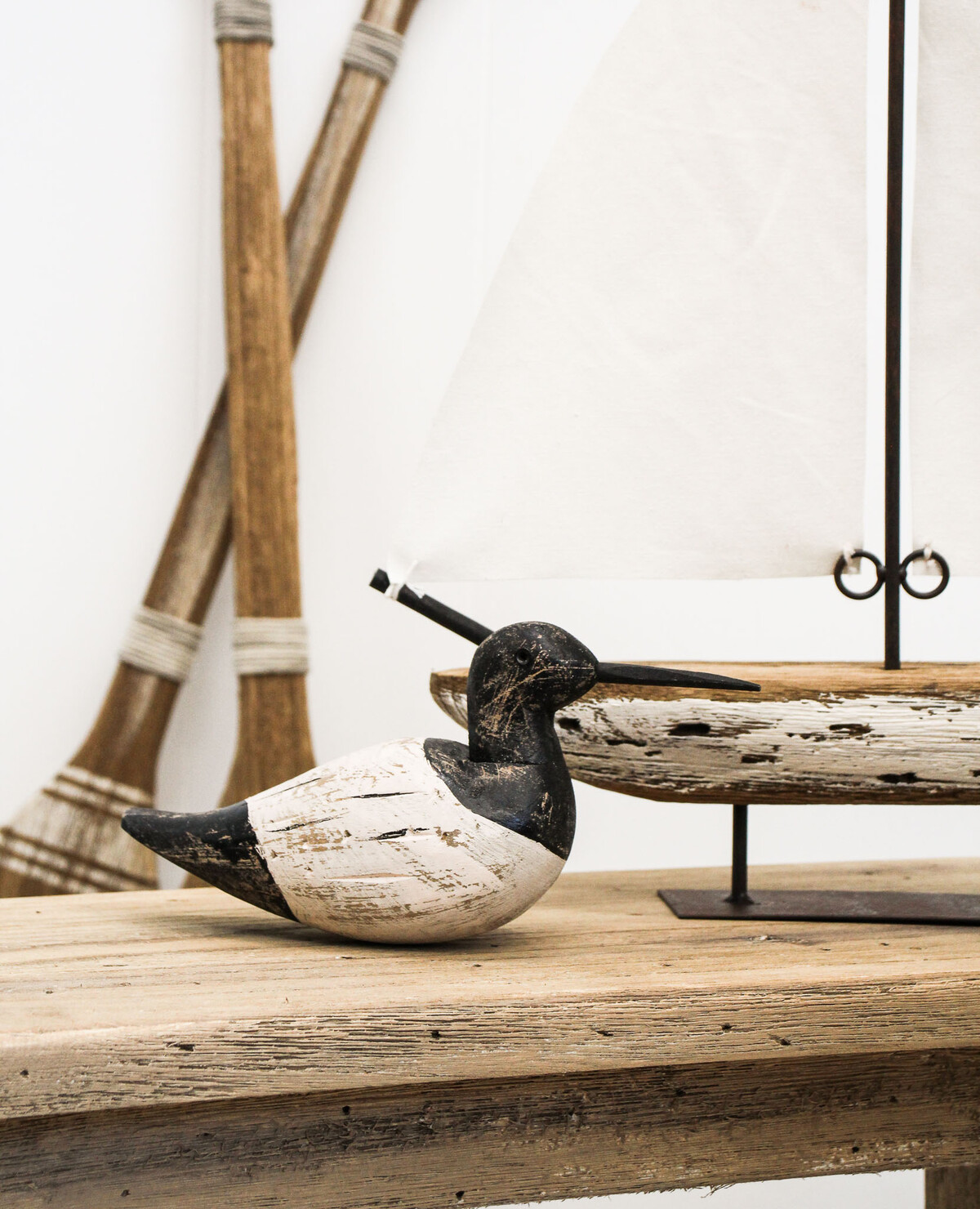 Oh, we love our Sail Boat. It’s just beautiful with its rustic charm and handcrafted finish. Each one is made from reclaimed timber - so you’ve got a real eco friendly option here that will fit right in with any beach house or those retailers who want a touch of nautical in their store offering. The colour is b’’ which is a cool white and wood blend, with a really rustic paint finish. The sail boat stands at 39x8x47cm, so it’s not going to get lost amongst all the home decor items on offer but also isn’t too bulky either. It’s easy to see why people are drawn to these sail boats - they’re eye-catching and unique. We know that anything that draws eyes in retail stores is always a bonus! This piece fits well on a mantle, in an office, or as a standout piece on some shelving display.