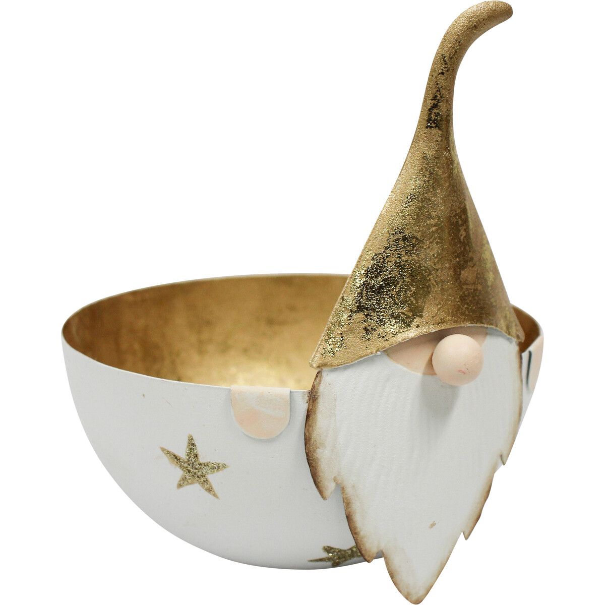 We think this piece will move fast off shelves during the holidays. Our small Santa Bowl in Gold is a real treat for any Christmas display. It measures 12.5x12x11cm - so it’s just the right size for a desk, table, or shelf. And we’ve seen lots of customers ask for it to add a bit of holiday spirit without going overboard on size. The white and gold finish is bold but it still blends in well with other metal accent pieces and natural tones. Made from sturdy metal, this piece is tough enough to last through many Christmases.