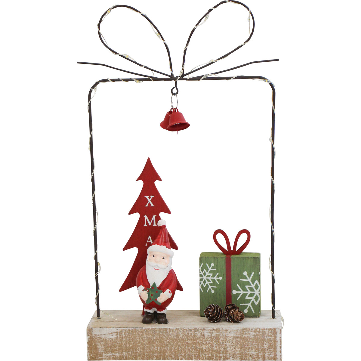 Santa Tree Present LED is a real treat to have in our collection. It is an easy fit for those who want to inject a little extra fun into their festive displays. There’s Santa, a snowflake-present, and a simple red tree with the big X-M-A-S - all framed inside a wobbly wire present with a rather cheerful bell on top. At 27 x 19 x 6cm, it sits pretty on smaller shelves or desks, but we’ve found it also fills empty mantle space without looking lost. The LED strand lights up everything just right - needs only two AAA batteries. Mix of red, green, and natural timber gives it that traditional look but with a quirkier twist.