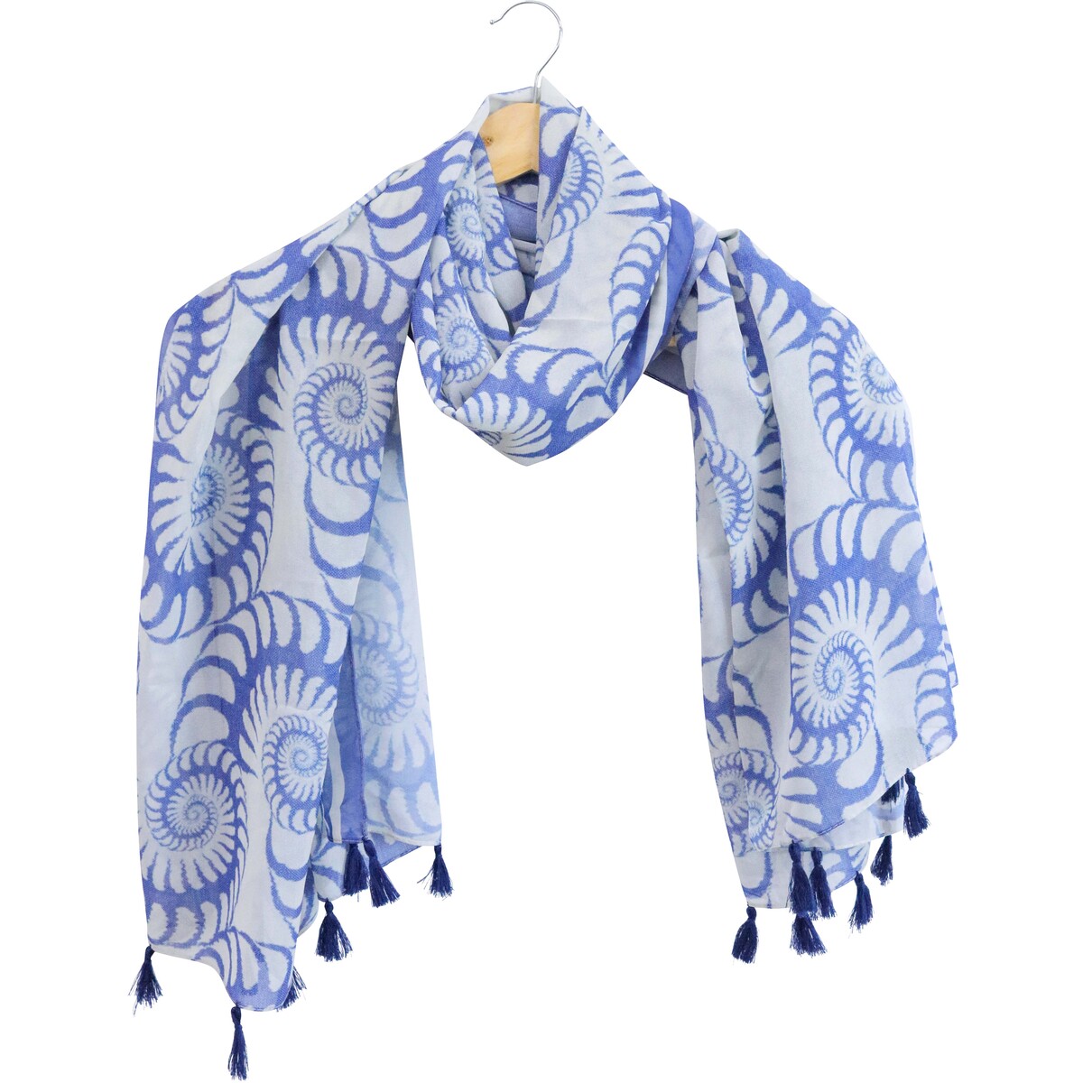 We’ve seen these worn as scarves, used as beach covers, or even styled as a hair wrap on holiday. At 90 x 180 cm, it’s a generously sized piece designed to work in any season. The elegant shell print is right at home in coastal-inspired shops but doesn’t feel out of place anywhere else - these patterns are simple enough to not dominate any room or outfit but add depth and texture wherever they are used.