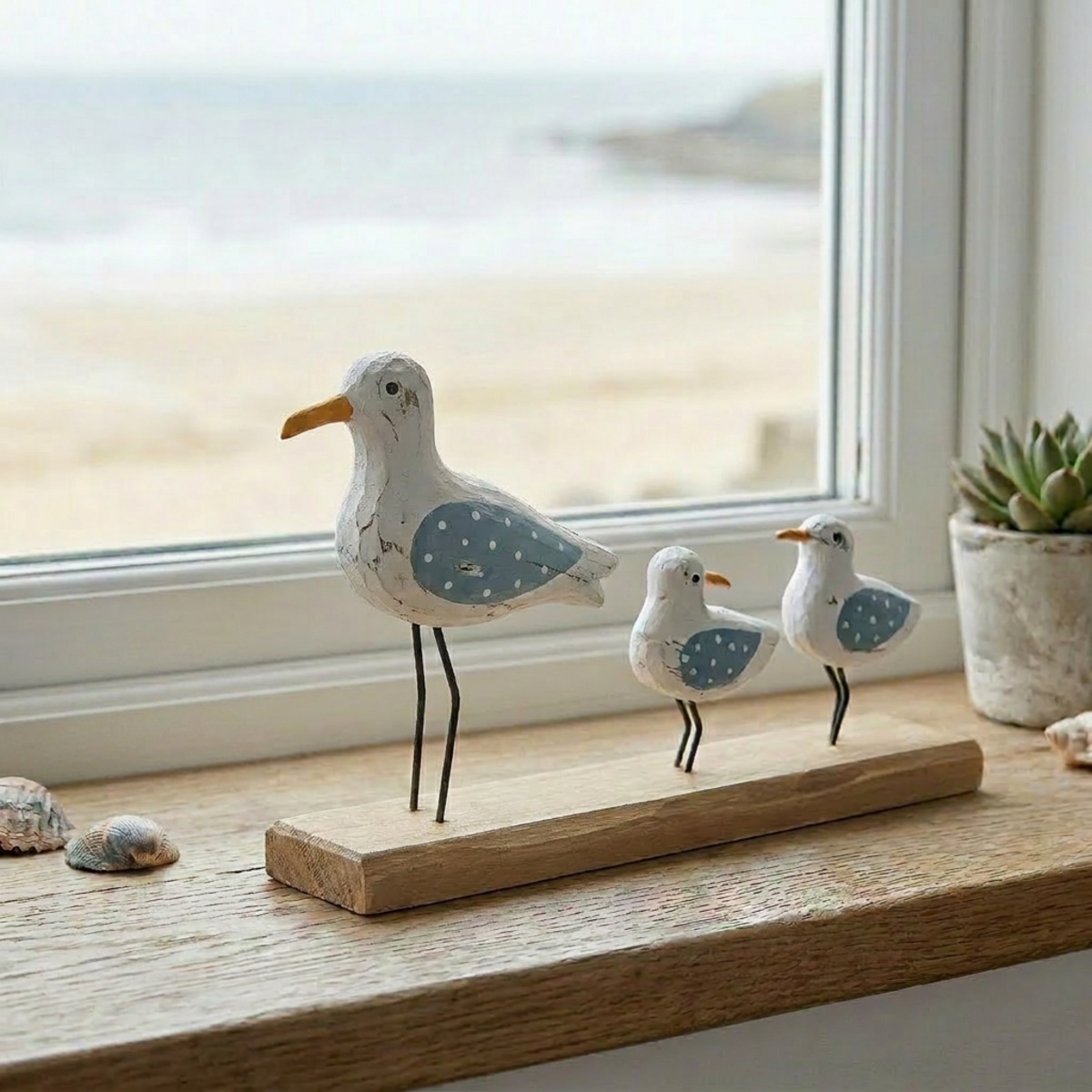 Our Seagull Family on Stand is one of those products that shoppers seem to spot from across the room - and we get why. The distressed paintwork, blue wings and rustic finish make it a charming gift or décor accent for lovers of all things coastal or beachy. It's made from solid wood with metal legs on a sturdy driftwood base, measures 24x4x15cm, and easily fits in any modern or classic store display.