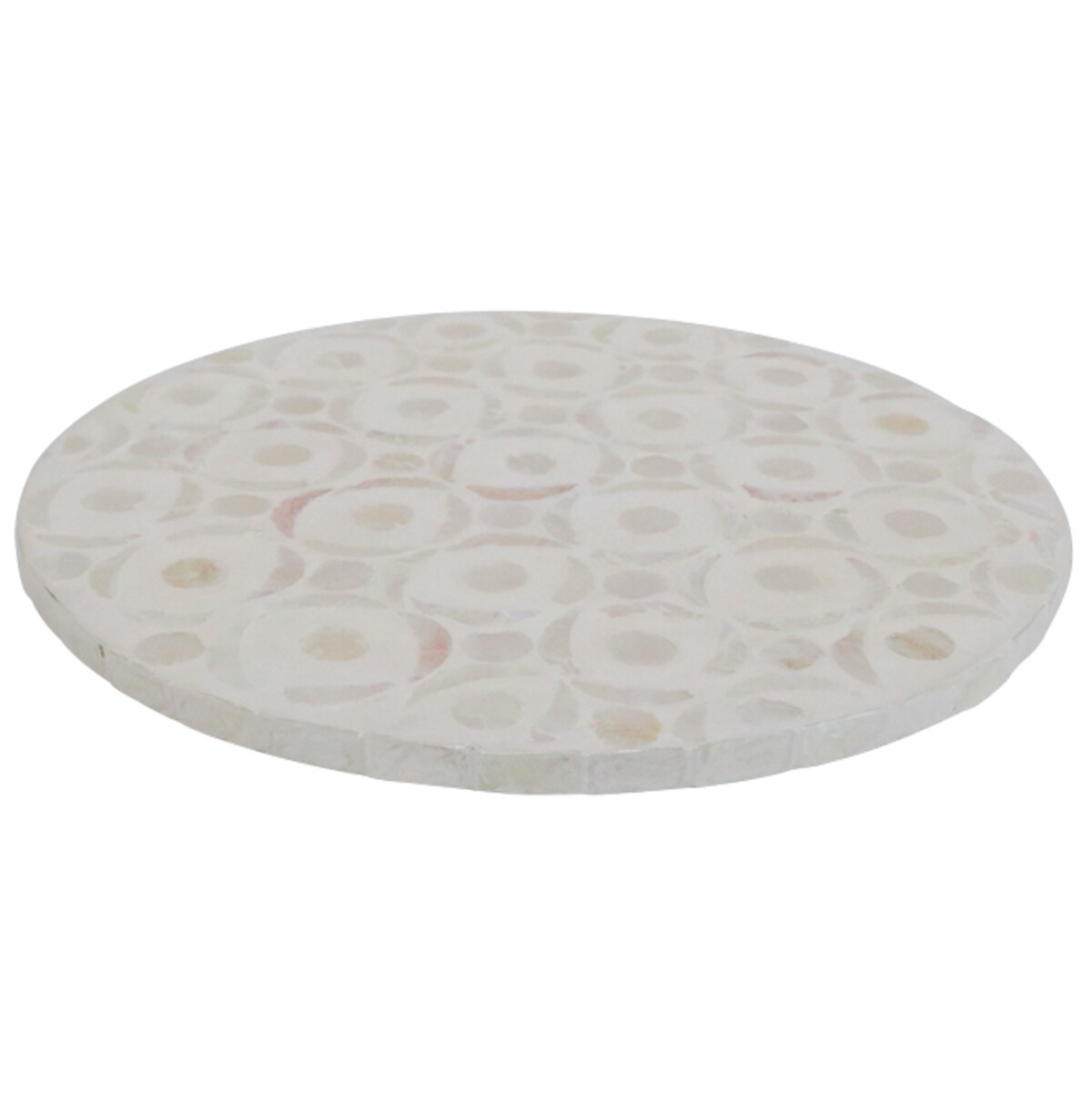 We want you to know that each mat is hand finished, and because the shell is a natural material no two are quite the same. That’s part of its charm. The subtle colour and circular pattern will blend well with many décor styles - traditional coastal Hamptons, even some minimal spaces might be lifted by this one special piece. This mat is heat resistant up to 70 degrees Celsius, but we do recommend advising your customers not to place an item directly from the oven onto its surface.