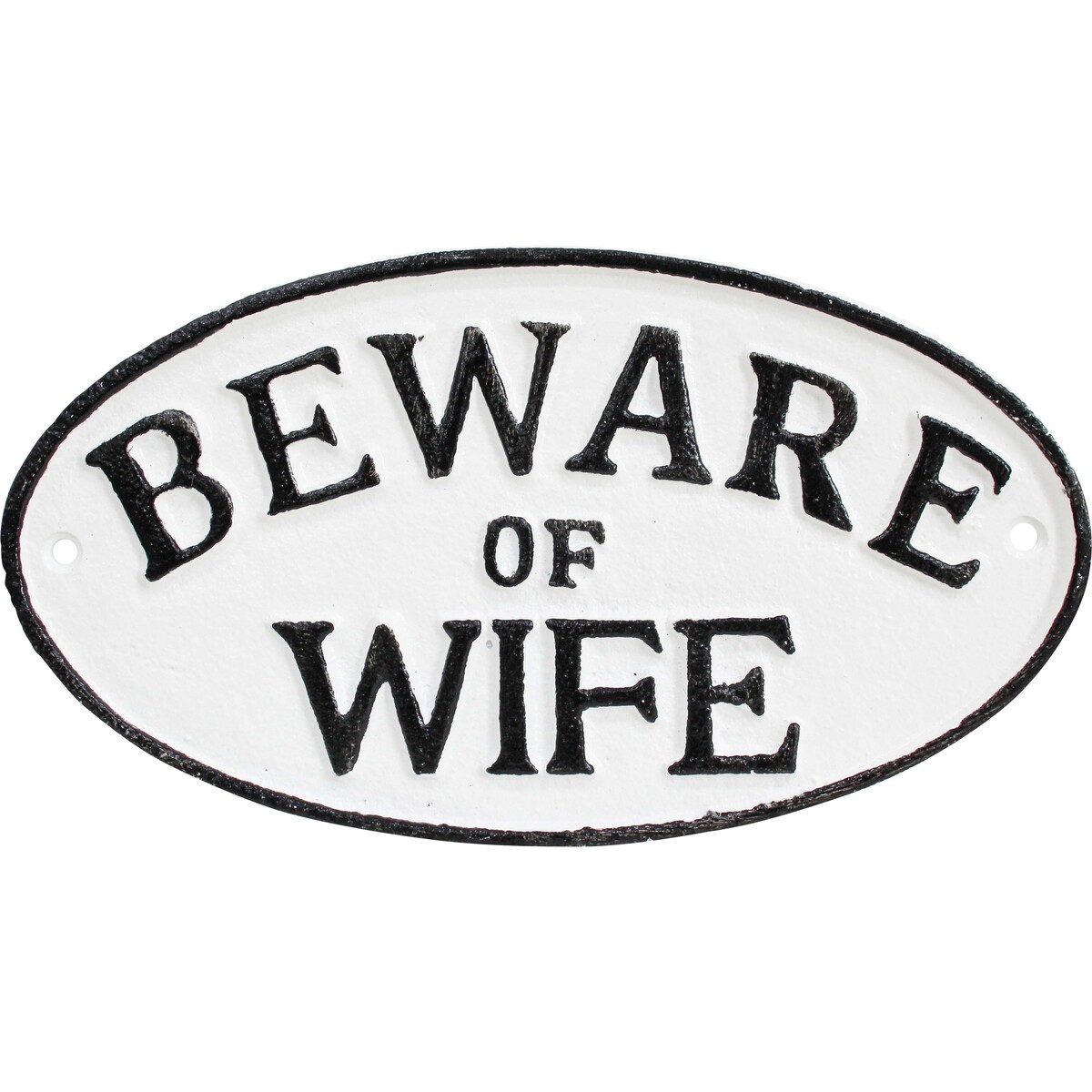 This is one of those pieces that's bound to get a few laughs. The cast iron 'Beware Wife' sign measures 23x12.5x1cm - just big enough to be seen, but not so big it dominates the space. And with its classic monochrome finish, this sign will suit pretty much any home or garden décor.
