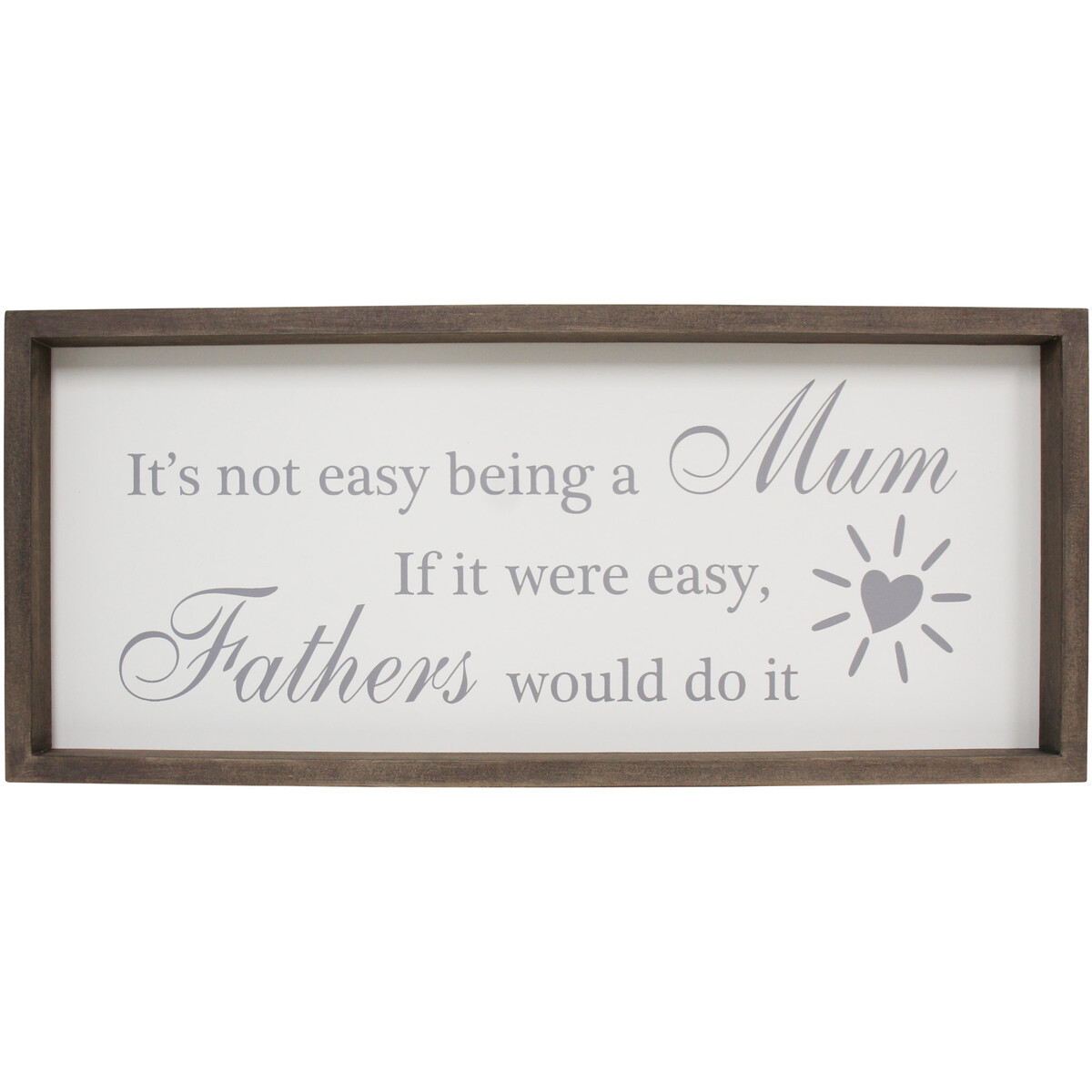 Some of us in the office actually laughed out loud when this one first came in. But it's also full of love and is great for mums with a sense of humour who don't take themselves too seriously. The sign says, It's not easy being a mum, if it were easy, fathers would do it. And there is a lot of truth to that, which is why this is a great addition to an office or home desk space. The font here gives this a polished look so it doesn't get too silly, and the wooden brown frame makes it fit in with contemporary homes and traditional ones as well. It's 48x3.8x21cm and made with MDF that has a fine finish to it so you know it's going to last and look good even years later. If you're looking for something fun to add to your homeware collection, don't overlook this one!