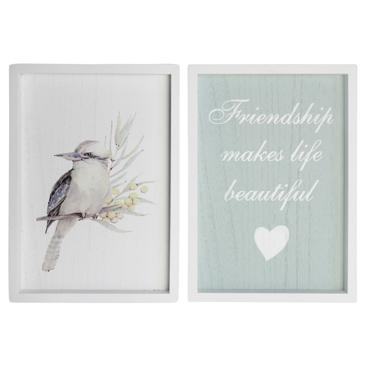 If you have a homeware or giftware store, you're going to want to stock our Sign S/2 Friendship Australiana. The set comes with two beautifully designed signs - a lovely kookaburra perched on a branch and the quote, 'Friendship makes life beautiful.' Each sign is 20x2x28cm and made from sturdy MDF.