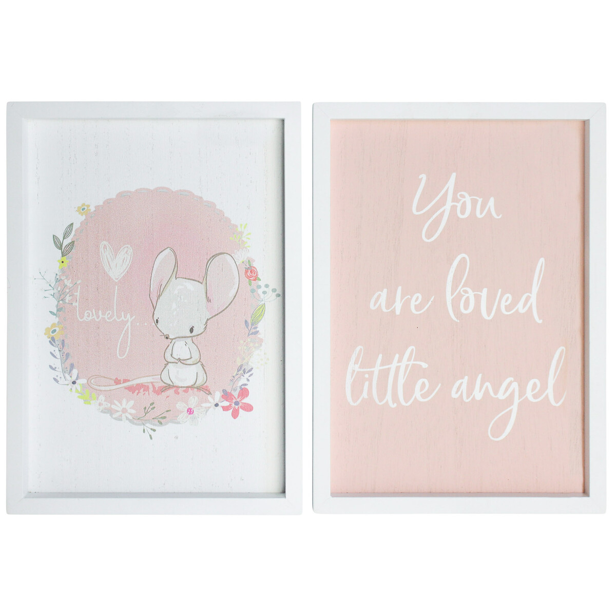 We just love how this pair of framed prints brings a lovely storybook feel to little ones’ spaces. This sweet nursery wall art duo makes us smile every time we see it, with their pastel-pink backgrounds and friendly mouse illustration that seems to welcome everyone in for a cuddle. The “You are loved little angel” sentiment strikes such a gentle note, while the other features a bashful character and whimsical heart. These sets look absolutely adorable over a cot or changing table, but that’s not all - they also make thoughtful gifts for growing families, and blend easily with most pastel colour schemes. They’re not too big at 20x2x28cm each, which is perfect for smaller rooms or gallery arrangements, and the pale white frames don’t weigh down the design at all. Just soft and so easy to match. And because they’re made from sturdy MDF, there’s less worry about bumps and smudges - these are as practical as they are sweet.