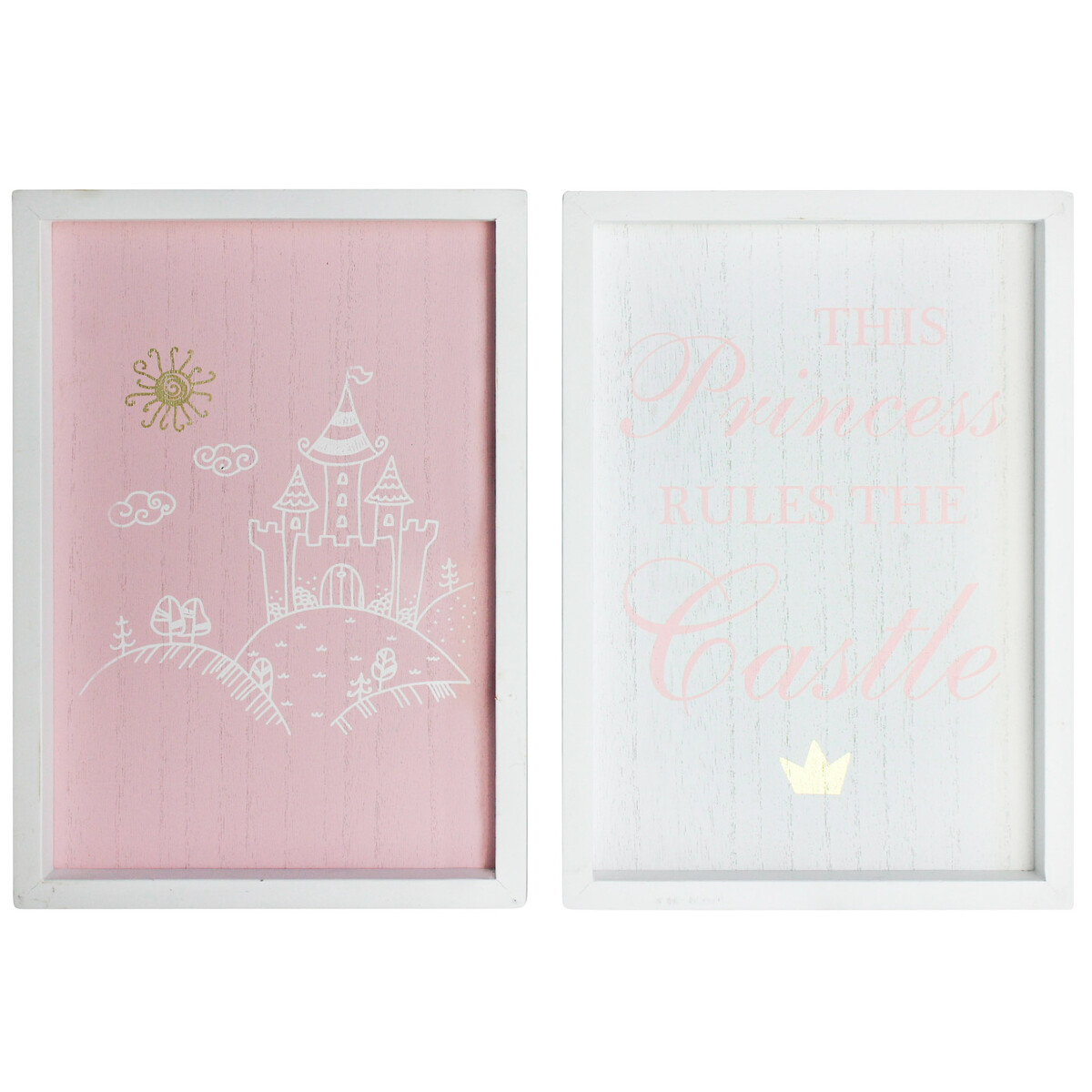 Sometimes you just need a sweet little reminder of who's really in charge - in this case, it's the princess. This adorable set of 2 Princess Rules signs is perfect for creating a pretty and positive vibe in any room, especially for little girls who love all things pink and magical. Measuring 20x2x28cm each and made from MDF, these charming wall pieces are sure to attract plenty of smiles and sales.