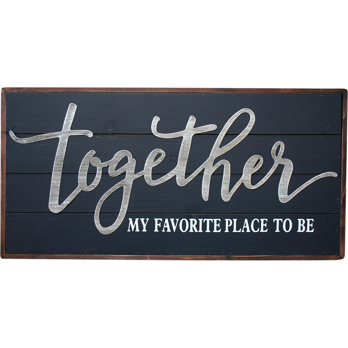 Its message - “Together My Favourite Place To Be” - means something different to everyone. We find it appeals across age groups because the message is so universal. Great price point too - makes an accessible gift for families, friends, and couples of all ages. Durable materials (wood, metal) mean long-lasting quality and easy care so there’s no fuss about upkeep. And its neutral palette works just as well against pale walls as it does against darker cabinetry.