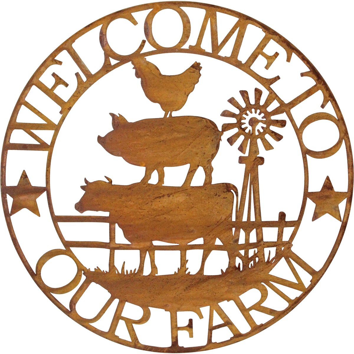 We think one of the joys of country living, or just that farm-fresh look, is a genuine welcome. There’s something so charming about inviting guests into a space with a sign that does more than just say hello. Our Welcome Farm Sign will do just that for your customers - and then some. It’s 49cm in diameter, crafted from hardy metal and hand finished with an authentic rustic coating. The patina will naturally change as it weathers outside. That’s not a flaw, though - it adds to the character, honestly.