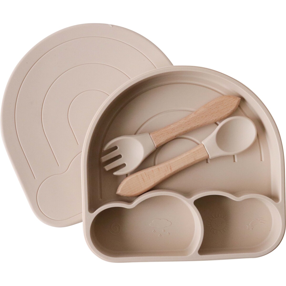 Silicone Bowl Set Arch Tan - Set of 4 What we’ve got here is a bowl set that’s so much more than your basic mealtime stuff. Our Silicone Bowl Set Arch Tan (bowl 18x17.5x3cm, cutlery 14cm) is actually pretty elegant, with its warm tan colour and simple arch shape – a kind of understated nod to Scandinavian design or Japandi calm. The three-section tray is fantastic for little ones to keep their peas from touching their sweet potato, and we’re not afraid to say it’s been popular with certain grown-ups who have strong opinions about food touching on their plates. We supply this set with matching silicone spoon and fork with wooden handles, which is fun and quite nice to hold. It’s all made from BPA-free, food-safe silicone that’s both microwave and dishwasher safe – no faff there. And the non-slip base means less sliding about if you’re dealing with a highchair and learning hands at the table.