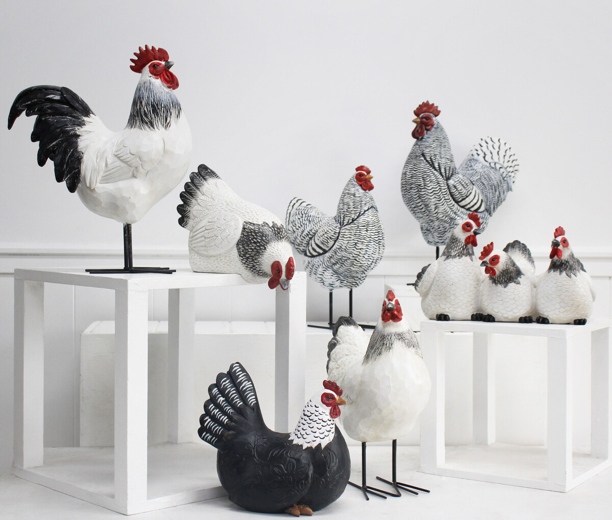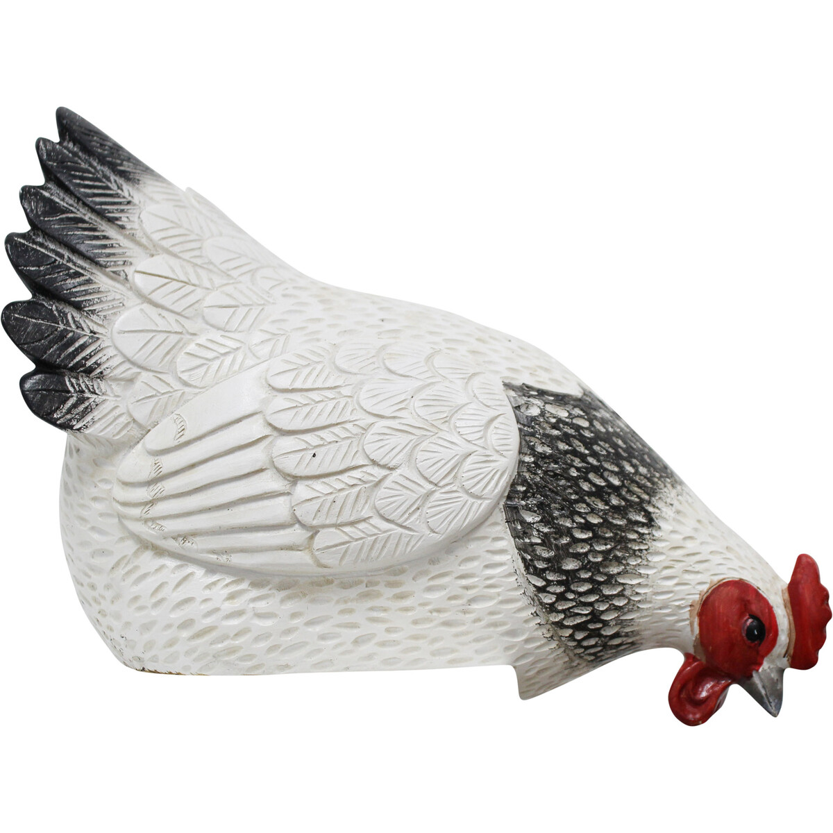 We have got to say, there’s something genuinely endearing about a home, shopfront or even office space that’s dotted with the right kind of animal decor. This Sitting White Hen is a 26x14x16cm resin piece and it really checks all the boxes for countryside warmth and good humour. We’ve watched this one fly off the shelves every spring. But then, it does add a lovely rustic charm that’s hard to resist year-round. The white feather design has been finished with a slightly shimmery black and grey paint job which catches the light and adds depth to the whole thing. There’s also a pop of red on the head and eyes to keep things interesting. We think of this as a very versatile piece - home, garden or retail space. It can just about fit in anywhere and add a dash of personality to all decor styles.