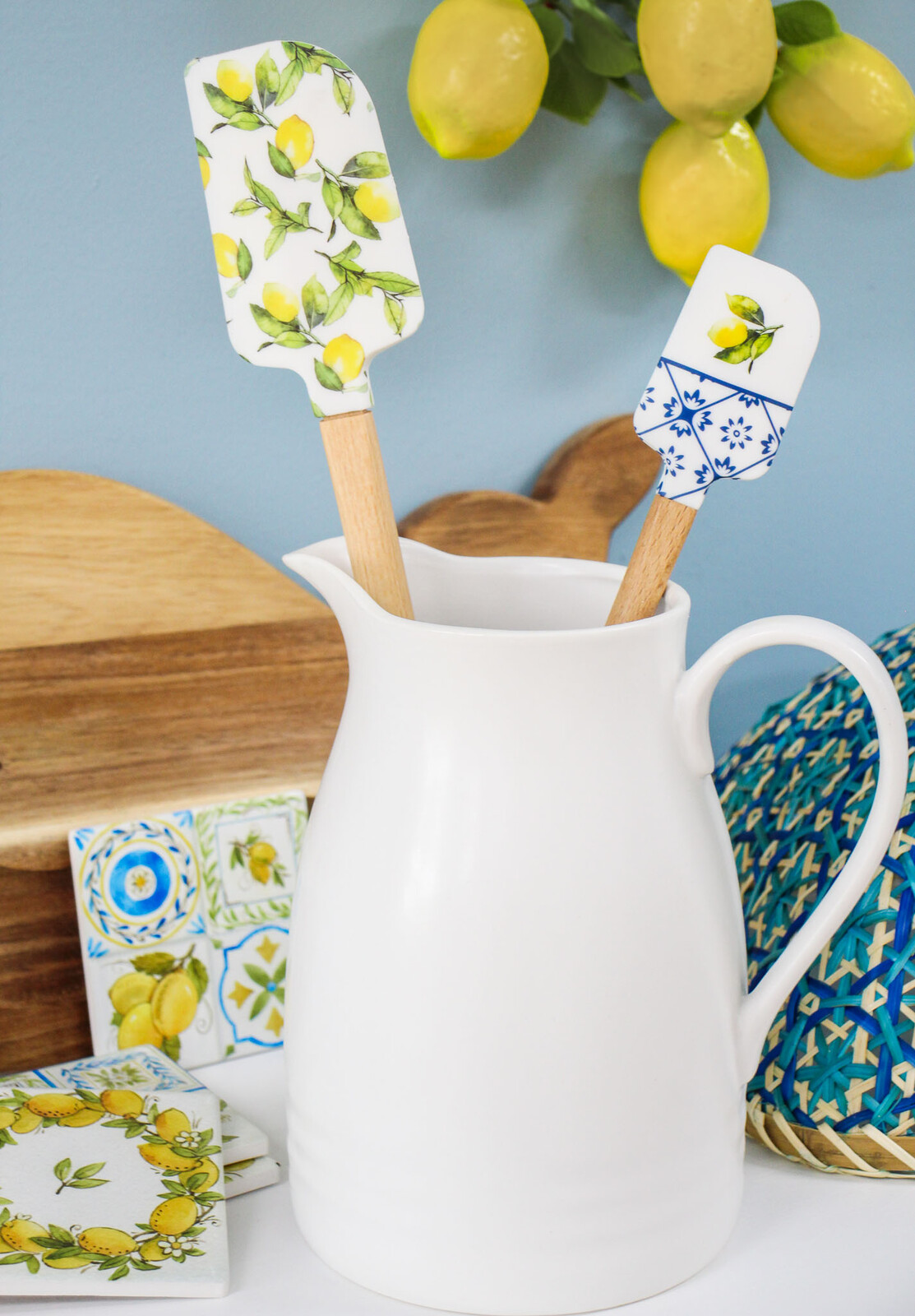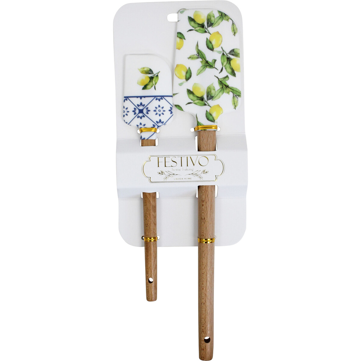We know homewares and gift shops can't get enough of lemon patterns lately, and our Spatula Set Lemon is absolutely on the money. This is a kitchen set that grabs people's attention because it's cheerful, really useful, and it suits all those classic and modern kitchens we all see a lot these days. We love how this has been designed - both spatulas have a natural wood handle with tiny gold bands for detail, one piece has the most beautiful blue-and-white Mediterranean pattern on the tip, and the other is covered in these fresh painterly lemons. They just look so lovely as a set.