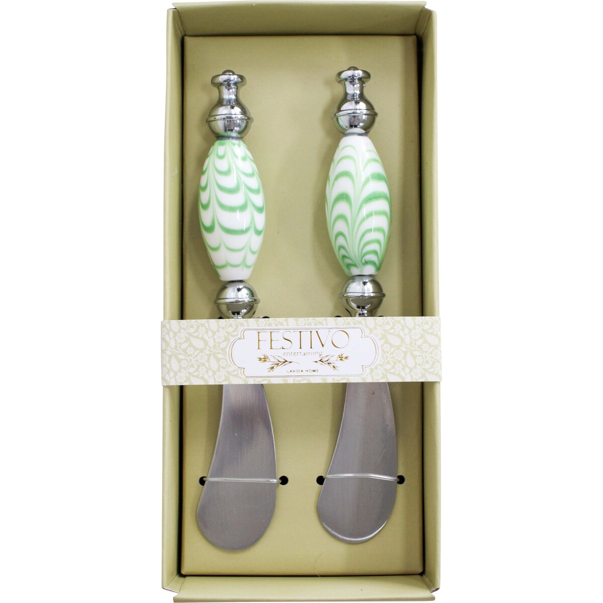 Just one look at our Spreader S/2 Juniper Garden set and it’s clear why this piece deserves a spot in any giftware shop. Customers with an eye for playful, contemporary homewares will be drawn to the duo’s distinctive green-and-white marbled ceramic handles. At 18x8.5x4.2cm, these spreaders sit comfortably in the hand and feature a satisfyingly weighty feel that’s surprising considering their ultra-smooth finish.