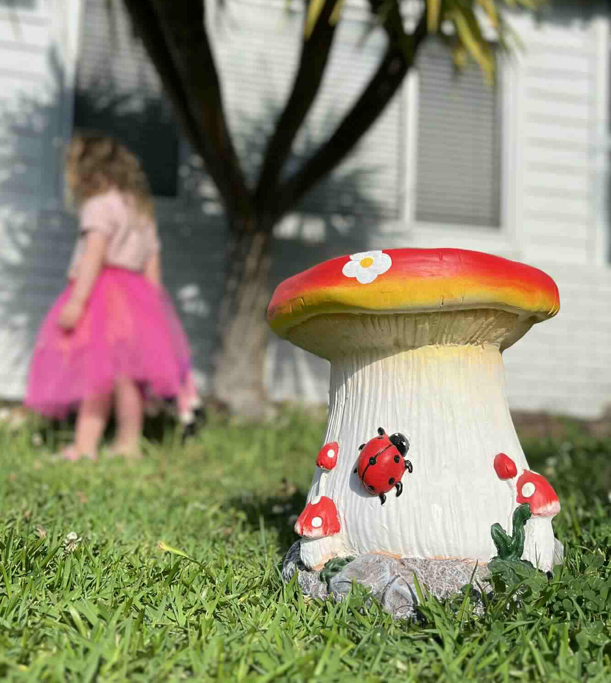 Our resin Toadstool Stool/Ornament is a crowd-pleaser, especially with its lifelike ladybird and mushroom details. At 32x32x33cm, this whimsical piece is just the right size to grab attention in a shop window or garden section. It's got enough colour and character to catch the eye of kids and adults alike - anyone looking to brighten up a garden or play area will probably fall for it.
