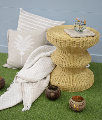 We find ourselves surprised every time by just how well this Carnival All-Weather Stool-Table works in a room - especially when you see it up close and realise the woven PE and coated metal has so much presence for something so light to move around. It’s got that rare, curvaceous shape - bright, optimistic, tactile - that makes each piece of yours absolutely unique from the next. The rattan look and blonde woodlike finish plays so well with organic, coastal, contemporary, or almost any relaxed homewares selection. And it takes a beating too - being indoor or outdoor rated, it will hold up very nicely if your customers spill drinks poolside.