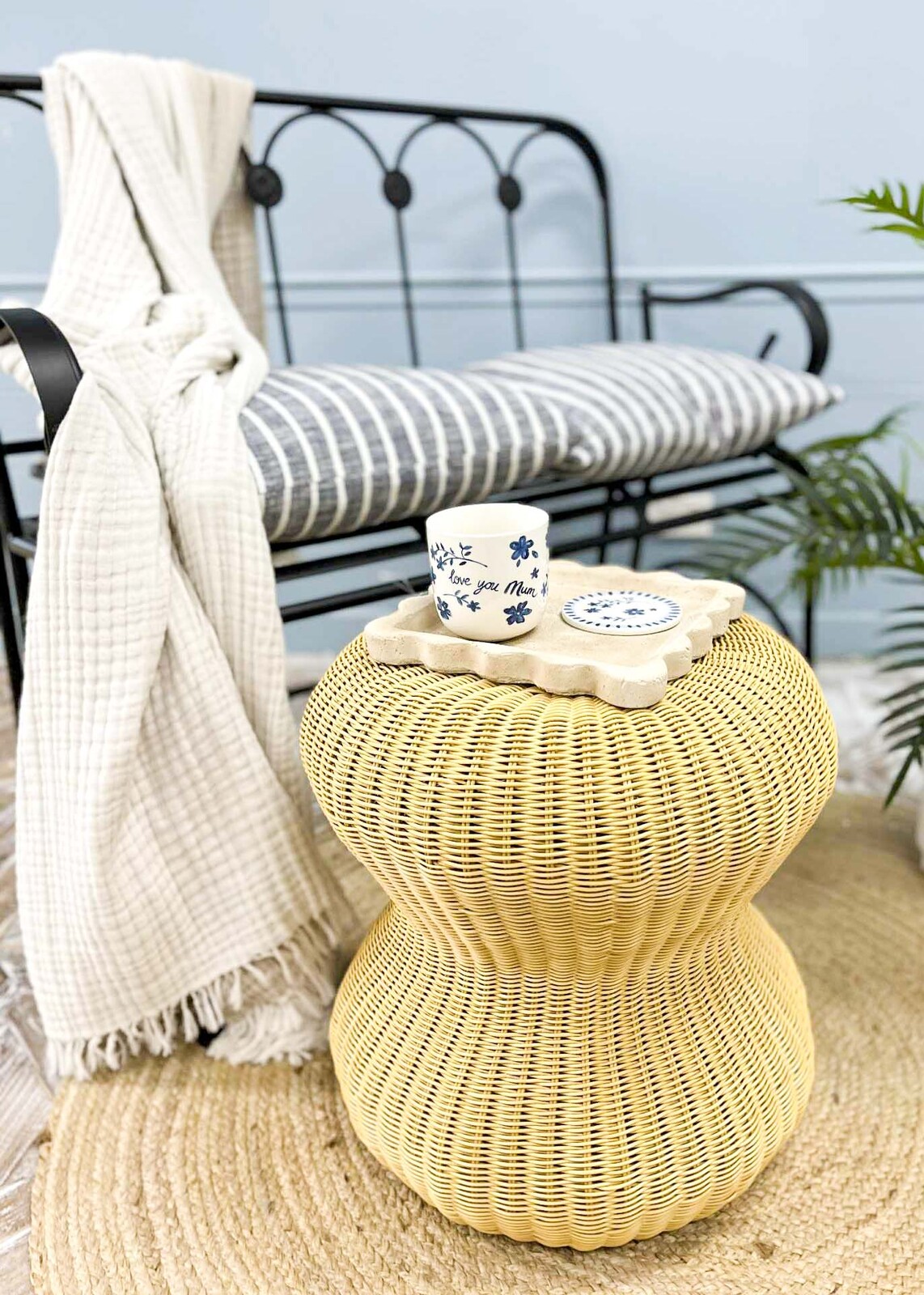 And because this stool comes in a tan woven PE and coated metal, it’ll be right at home indoors or outdoors - at a kitchen bench, by the sofa, or as an accent table on a sunny balcony. We think its dimensions (47.5x47.5x51cm) and low-key colouring are perfect for spaces where you want to introduce something organic and sculptural without going for anything too dramatic.