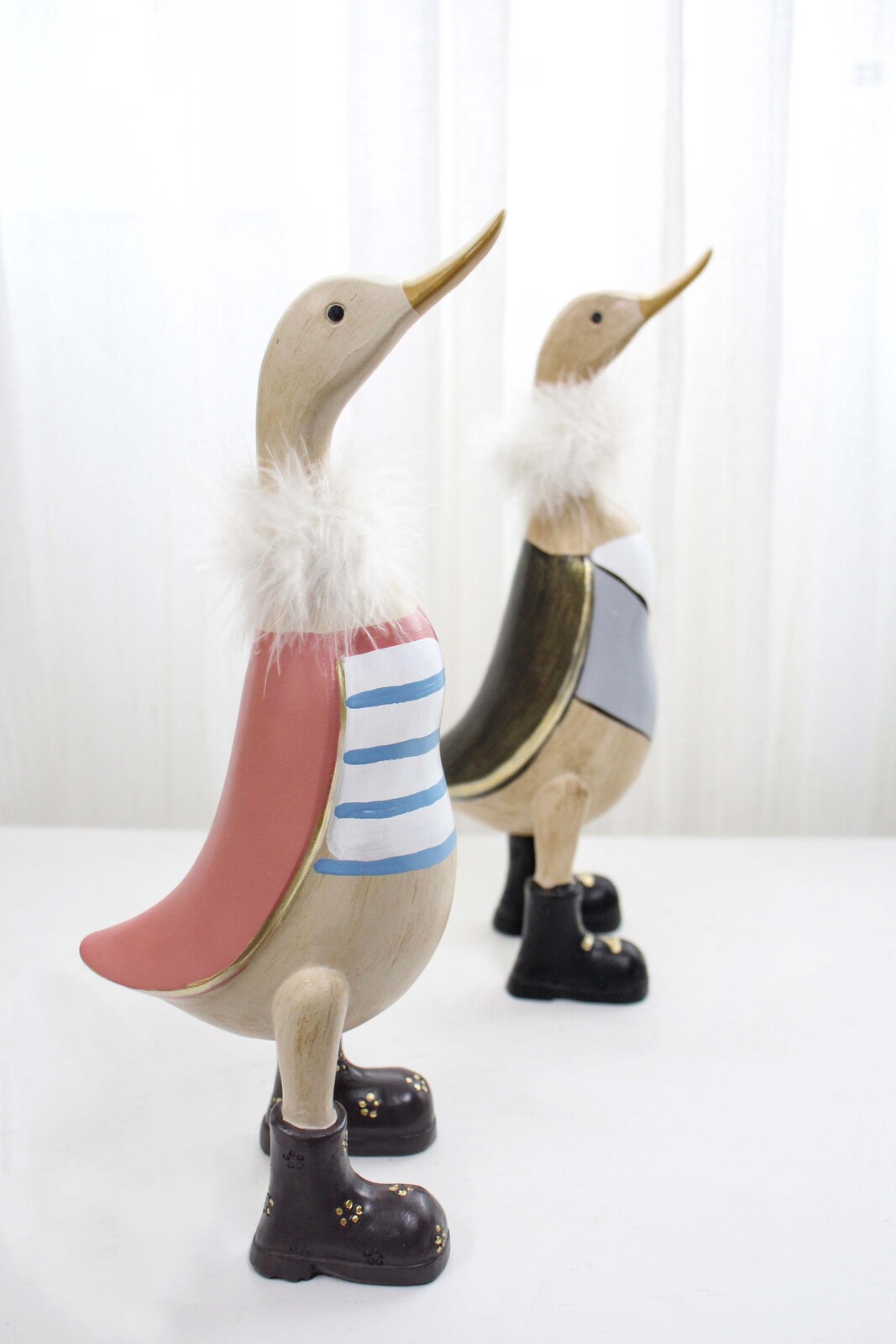 This one’s a real charmer - Tall Duck Howard stands 29.5cm high and brings so much character with his cheeky pose, statement monochrome look, and the cutest fluffy collar we’ve seen in ages. The first thing anyone notices is that high-gloss tuxedo vest with those gold trim details, but it’s the boots that really make us grin every time we look at him. There’s just something fun about the way this duck holds himself - it could be that he’s proud of his feathered ruffle, or maybe it’s just his endearing silhouette.