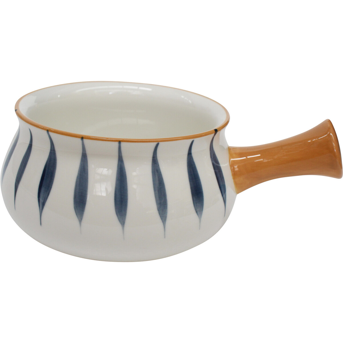 There's something beautifully laid back about this Tapas Bowl Dash - we can’t help but love its effortless style. It’s easy to see why it’s popular with both homeware and giftware retailers. That lovely flared brown handle - it’s practically calling for someone to pick it up and dish out a few snacks, isn’t it? Oh, but the hand painted ceramic is what makes it truly special. None of that cookie-cutter sameness here - each piece comes with its own quirks and little differences, so your customers will feel like they’re buying something unique. It sits nicely at 18.5x13x7.5cm, which is generous enough to fit appetisers or desserts, yet compact enough to tuck away in a cupboard. The white base with dark blue dash pattern looks organic - just messy enough to feel relaxed yet elegant - and can be worked into practically any décor. Definitely not suitable for the dishwasher or microwave though, so handwash only on this one.