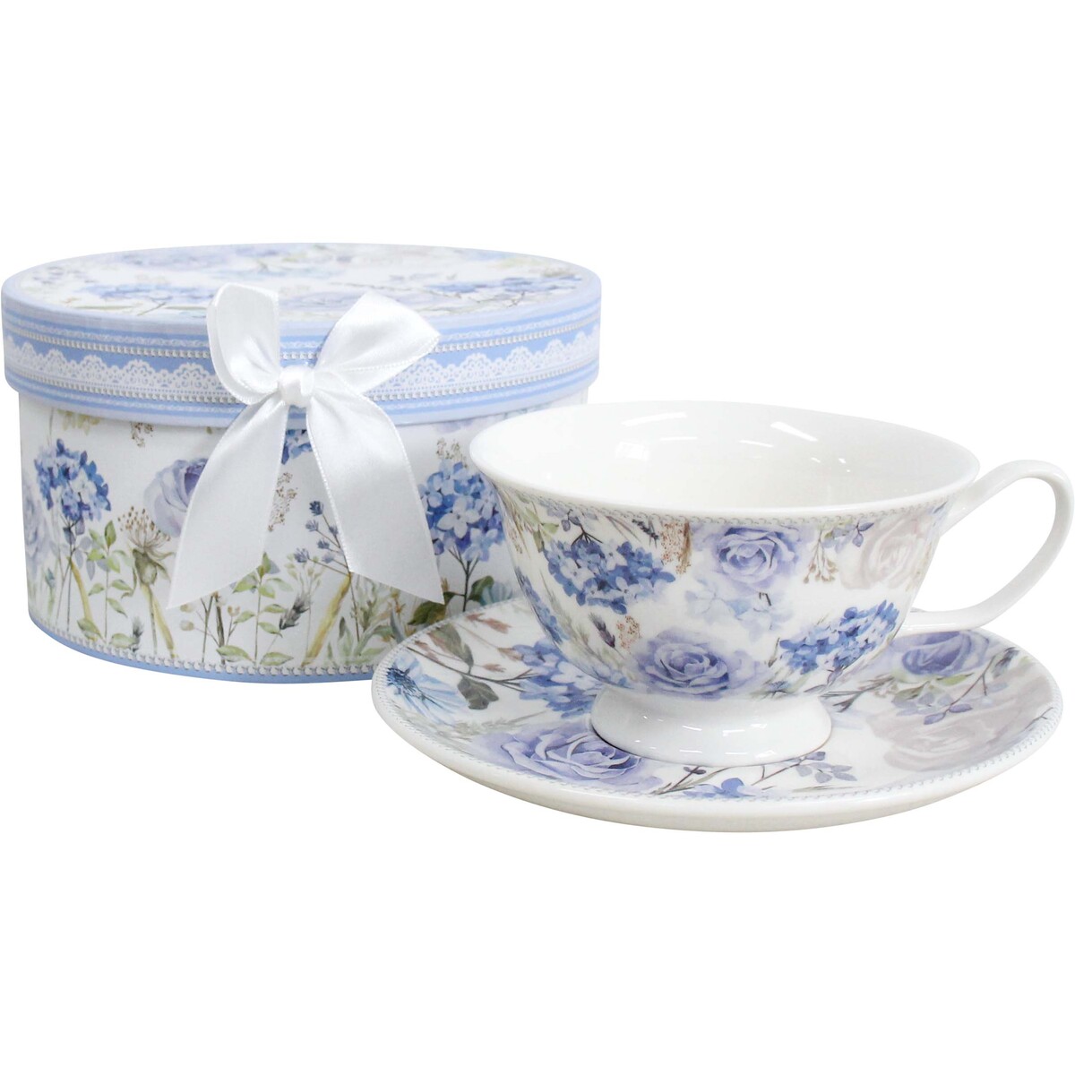 Our Hydrangea Tea Cup and Saucer set is one of those pieces that just feels like it’s always had a place on the table - there’s something instantly timeless about it. There’s a bit of a vintage edge to the blue floral design, but you don’t have to go all-out-traditional with your merchandising for it to make sense. It fits right in with both classic and modern homewares. We’ve seen customers use these in settings as contrasting as contemporary kitchens and country home breakfast tables. The ceramic glaze is really lovely. In fact, the pattern has so much depth - you really notice the detail around each petal and bloom with each pour. It makes a thoughtful gift because it comes in this matching printed keepsake box tied with a little satin bow. It’s one of those things you know will become part of someone’s tradition - Sunday mornings, afternoon tea, whatever! Saucer measures 15cm, cup is 10.5 x 5.5cm (plus handle).