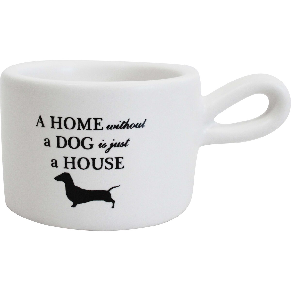 Our House Dog tealight holder is a sweet little piece for dog lovers who can’t resist that “home is where the dog is” feeling. Made of ceramic and standing at 8x5x3cm, it’s hand-finished to give it just that touch of individuality. Some little imperfections in the body and print are a normal part of the charm with these - something we reckon makes them feel more genuine for anyone after that authentic homey touch. With its simple design and neutral white and black colour scheme, it slots easily into various home and office décors. It looks great on sideboards or office desks, and is especially nice for customers wanting to honour their four-legged friends or just add warmth to a space. We’ve seen how much people love pieces that feel personal or carry a bit of playful messaging. And this one does it with a little humour as well as an iconic silhouette, making it really quite versatile for gifting too.