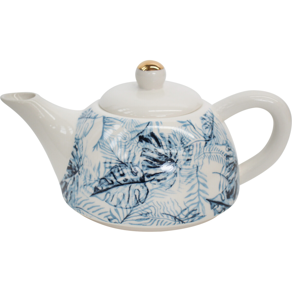 We have to admit - this one had us reaching for the kettle as soon as it landed in our warehouse. The Island Blue teapot has such a classic, breezy look with its tropical blue and white palette that it's hard not to want to give it pride of place in your shop's window display. But what really gets us excited is the simple luxury of serving tea from a handmade porcelain piece like this. It's hand-finished, so decal placement will vary - some ever so slightly misaligned florals here and there, just the nature of handcrafted work and nothing we classify as a defect. We genuinely think these little variations add to the charm and authenticity. We’re loving how the 19.5x12.5x10cm size makes it super practical, but still incredibly elegant for kitchen, lounge, or even office decor shelves. And yes - that pop of gold on the lid sets off any homewares range beautifully, but works equally well in giftware. This is one piece that gets people talking about the “little joys” in daily rituals.