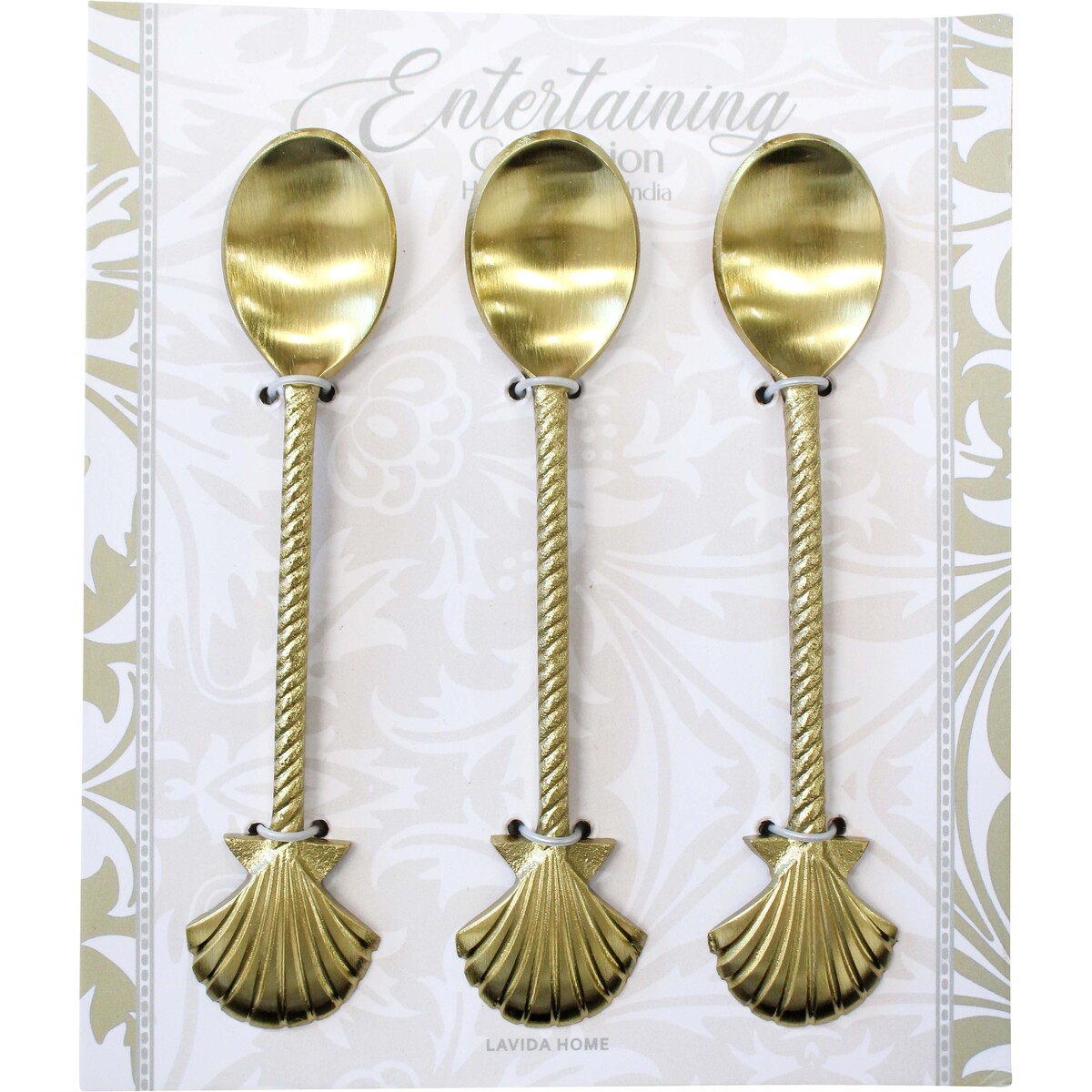 We've always been a bit partial to a classic gold look, and this set of three brass teaspoons ticks all the boxes for us. They're lovely to hold - well balanced, with a sturdy weight - and their slightly textured handles look just a little bit nautical with their shell-shaped ends. But what really caught our eye was that finish. Each one is slightly different - not too matchy - which is exactly what you want in an item that's handcrafted. It means they feel like they belong in someone's collection of things gathered from all over the world. They're the right size at 14x3x.5cm too - not too tiny, and not oversized either. We think they would definitely find their way into gift hampers, or maybe as wedding favours, or even as decorative pieces in shops focused on self care and tea time treats. And they're versatile enough that you can merchandise them in a range of settings and styles too.