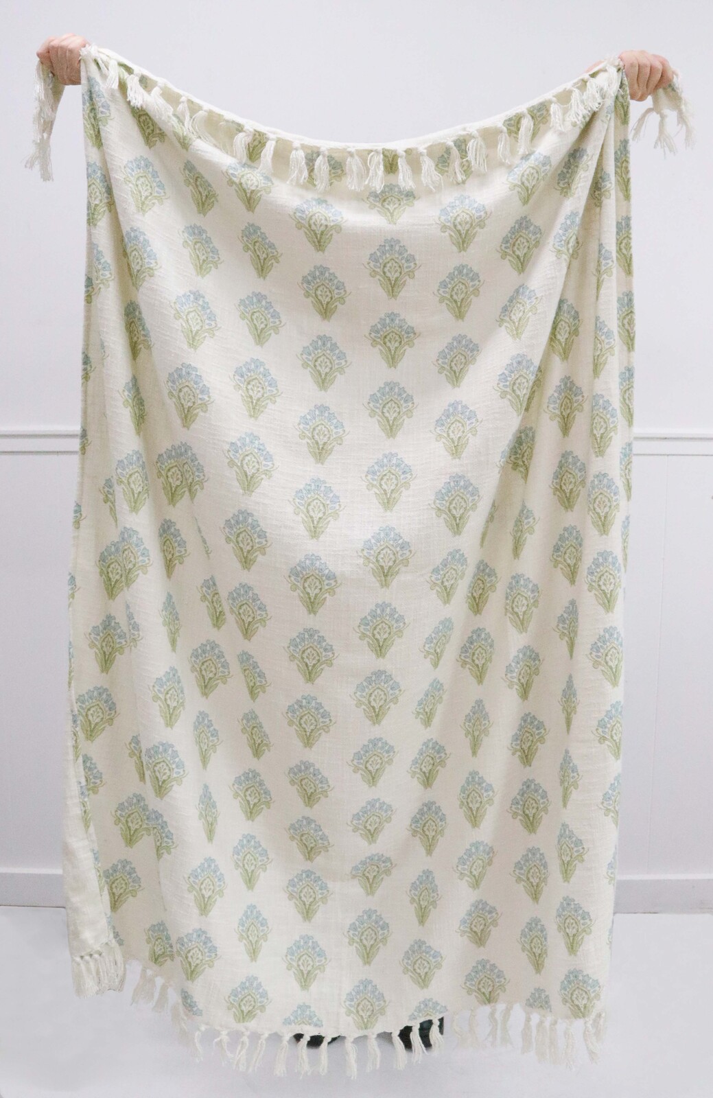 Throw Ari is a home decor piece we are genuinely excited to offer. It’s that rare find that brings together artistry, comfort, and practicality all at once. The subtle pattern is hand-block printed, which is no small feat - every repeat carries the touch of the artisan who made it. It’s also 100% cotton, giving it that lovely soft hand-feel and a little natural texture as well.