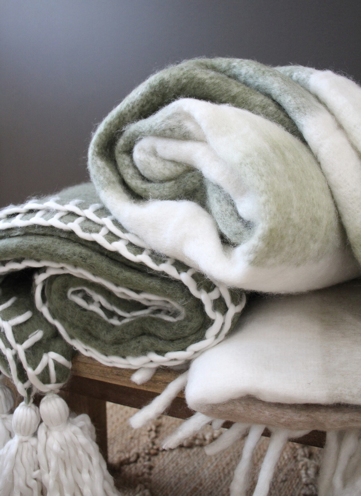 This Throw Blanket Stitch Bronze Green is a real crowd-pleaser in our range. It’s something that fits effortlessly into any modern living space, whether it’s for a lounge, bedroom or even at the foot of a guest bed in an Airbnb property. It’s got this beautiful bronze green tone - and you know, not every throw can pull off earthy and sophisticated at the same time. And with those contrasting chunky white stitches and handmade tassels? The styling options are endless - they look fantastic draped over tan sofas, layered on beds or folded on display for that extra touch of warmth. It's a subtle feature that gets people talking.