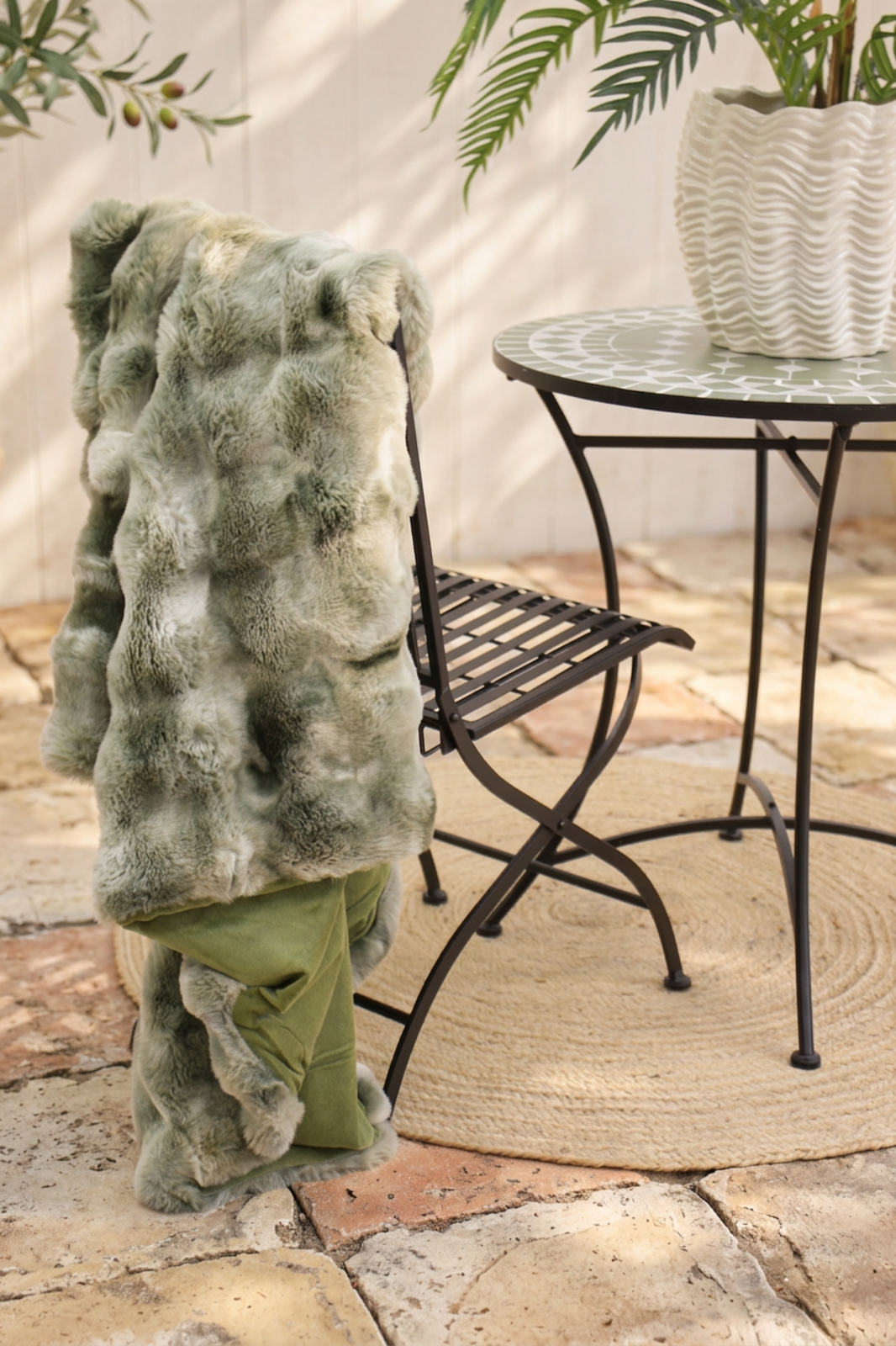 Throws have seen a bit of a resurgence lately - everyone’s been wanting those bold geometric patterns but there are still people out there who’d want to keep things a little more subtle. This dappled sage faux fur option is a cross between that subtlety and something modern. The colour is soft enough that it blends in with other pastels but it’s also got some abstract patterns going on, so you do get that contemporary - minimal - feel as well. The faux fur is also pretty plush and the reverse side is this lush solid sage hue. Because it’s such an inviting piece, we’re finding that people are using it in their lounges for when they want to get comfy, but also to add some texture and contrast when they’re hosting. At 130x150cm, it’s got you covered whether you’re snuggling up on your couch or layering it over your bedding. For care instructions, refer to the image provided.