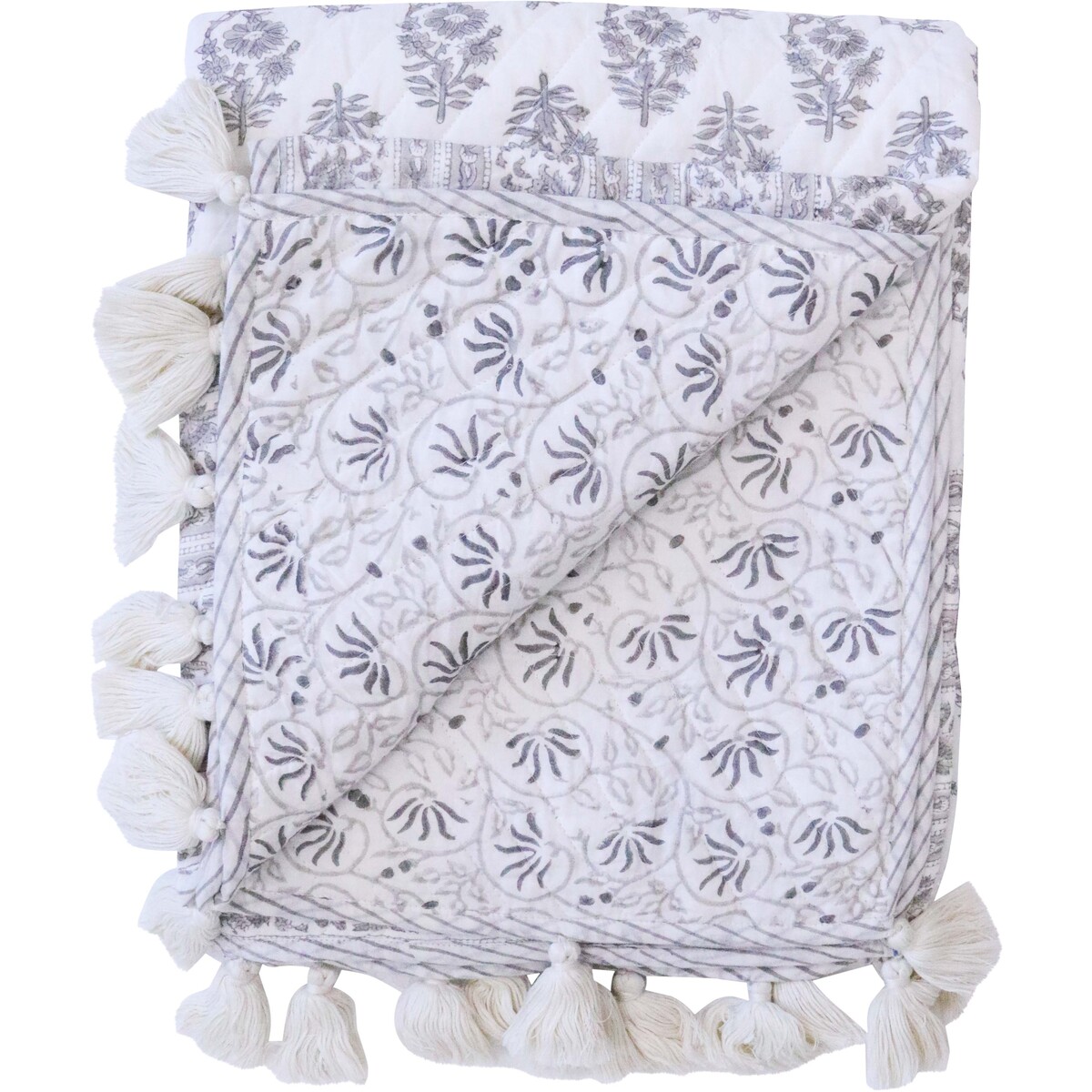 Our Persian Flower Throw is the sort of piece that always stands out, whether displayed on a shop shelf or folded neatly on a showroom bed. We keep hearing how unique each one is - we totally agree. This block-printed throw is handmade from pure cotton voile, which means every piece is just a little bit different. It’s got this genuine artisanal feel that comes with hand-craftsmanship, and the slightly varied print and sizing (they all come around 130x150cm) are part of its beauty. That lightly faded black-on-ivory floral pattern works for classic looks, but it has enough of a modern edge to also sit well in more contemporary homes.