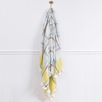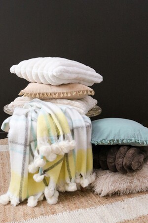 We have always been a bit partial to those pieces that add warmth to a space and look seriously cute at the same time. Our Throw Tartan Moss/Sea is one of those gems that really brings an inviting, cheerful touch to whatever room it lands in. It measures 130x170cm and the colours are just - well - it’s calming but also playful enough to bring some energy into a lounge, bedroom, or even a spot at the office. We think it’s really clever how the pops of soft yellow play off against the subtle seafoam palette and classic tartan pattern. It’s made of 25% wool, 55% acrylic, and 20% nylon so it feels cosy and slightly plush but has that durability factor that customers always go for. And the poms on each end - they’re different on every single piece! We love that this is all handmademade so every blanket has its own unique feel - different finishes, little quirks here and there, variations in size. Throws like this one don’t need any embellishing or complicated styling - they can hang over a chair, cover up a bedspread, or sit pretty on a shop shelf until someone grabs them for their next Netflix binge.